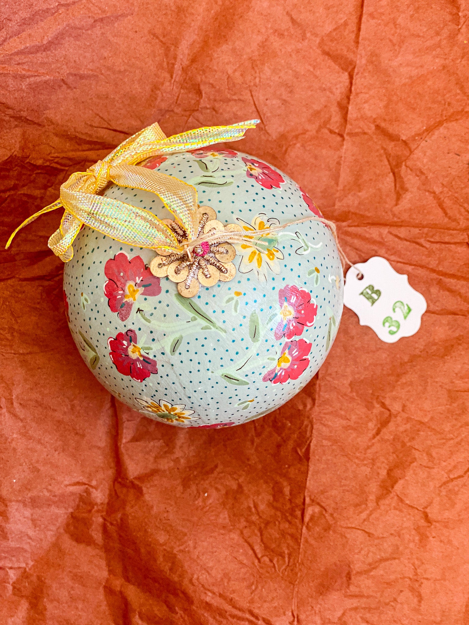 3.5" diameter Paper Mache Ball Ornament