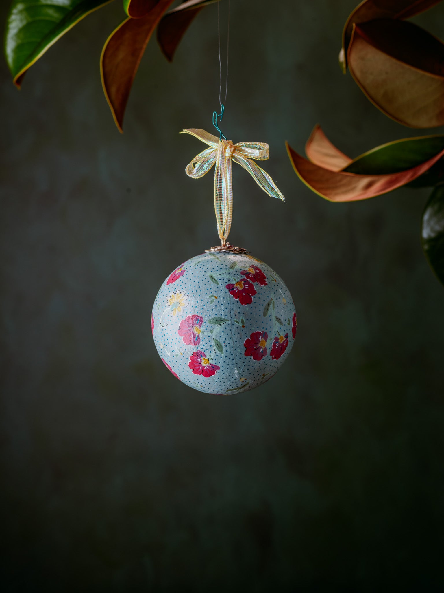 Ball Ornament Blue Red Floral Sprig (1/1)