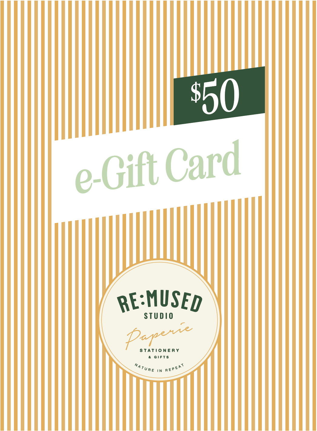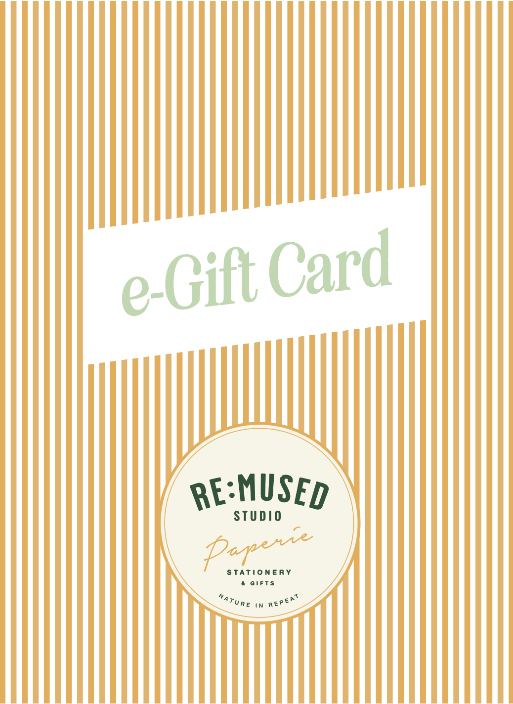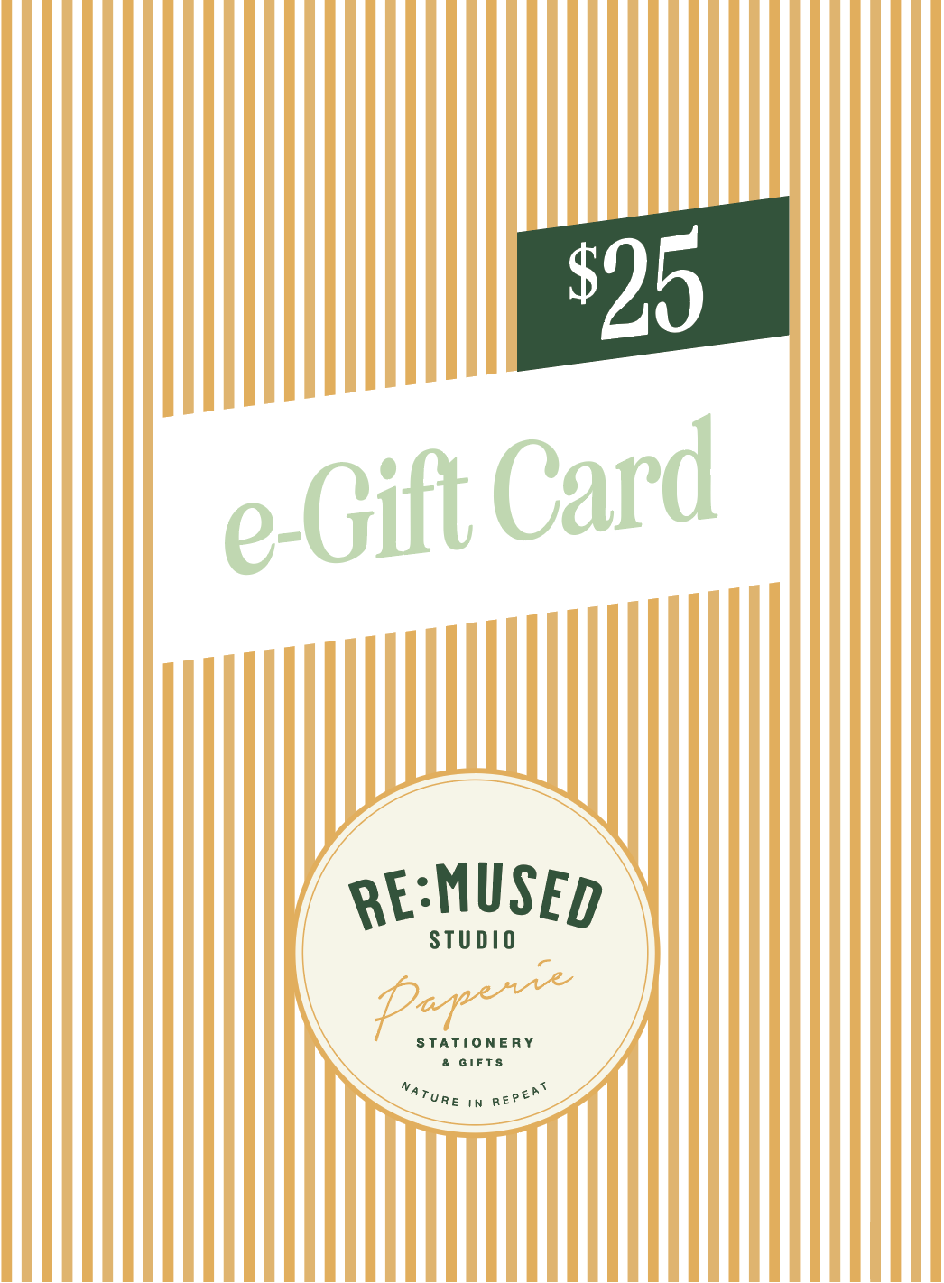 For those who find magic in the details, a re:mused studio Gift Card is a little invitation to wander through our world of artful curiosities. Each illustration and pattern begins with the hand and is crafted with the paper lover in mind.