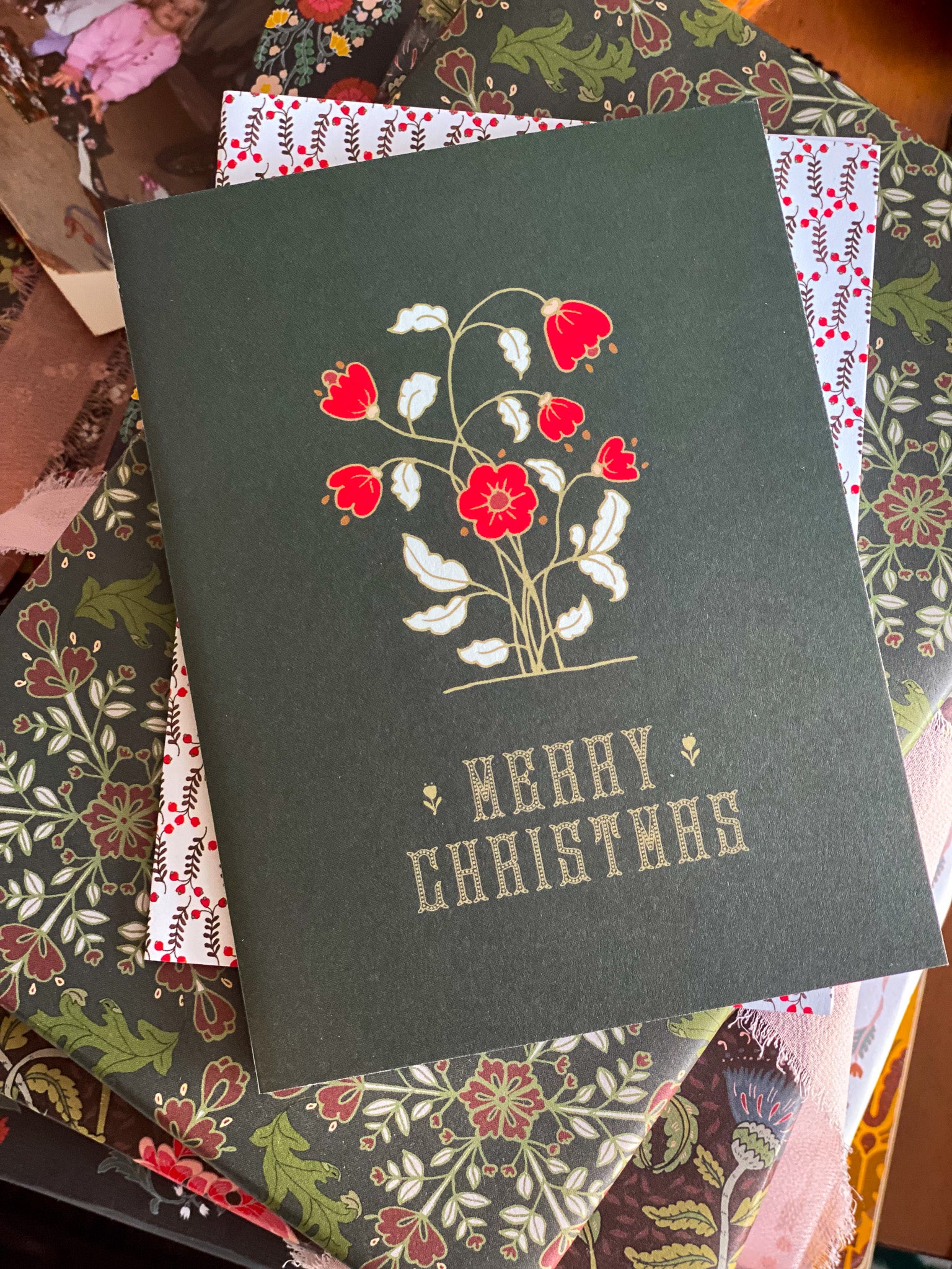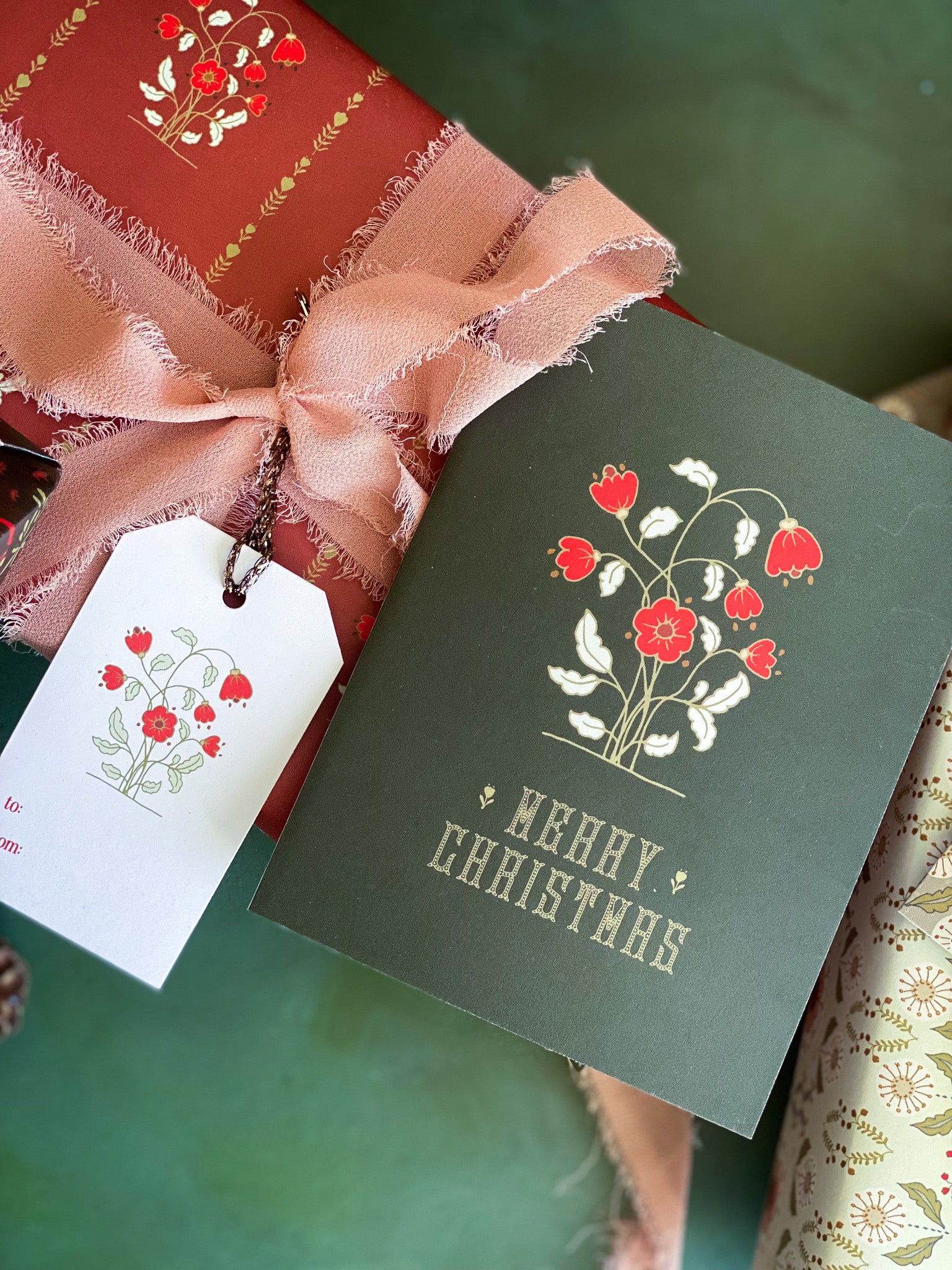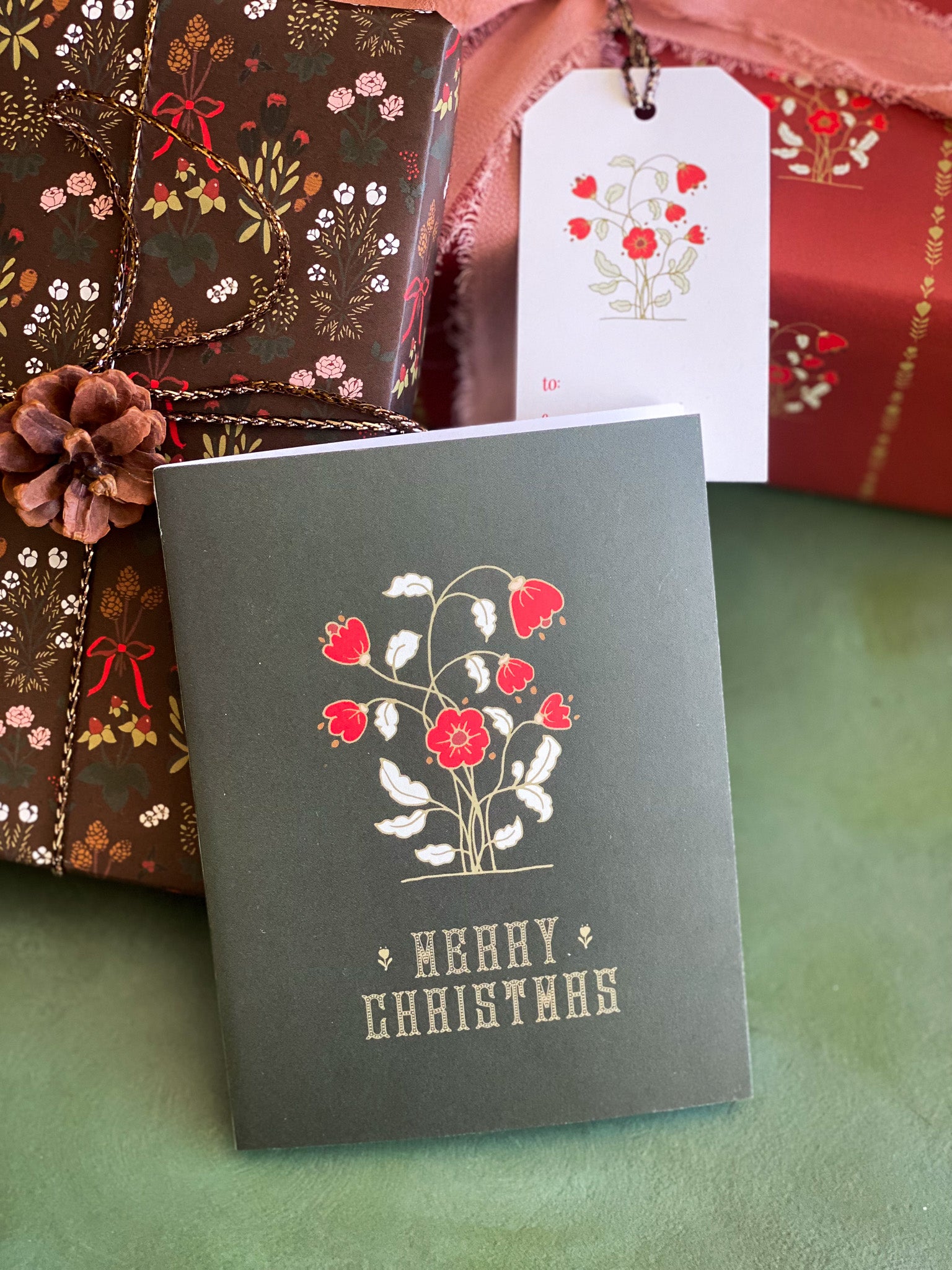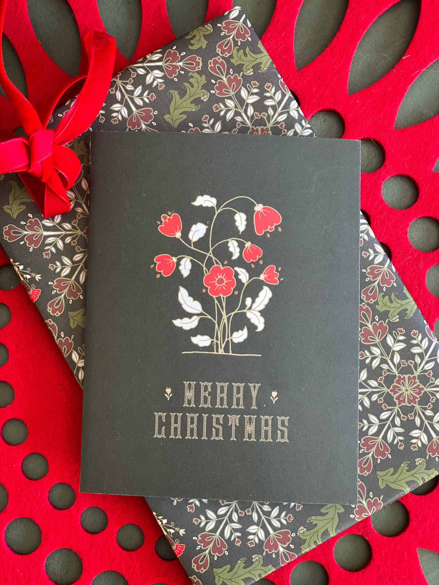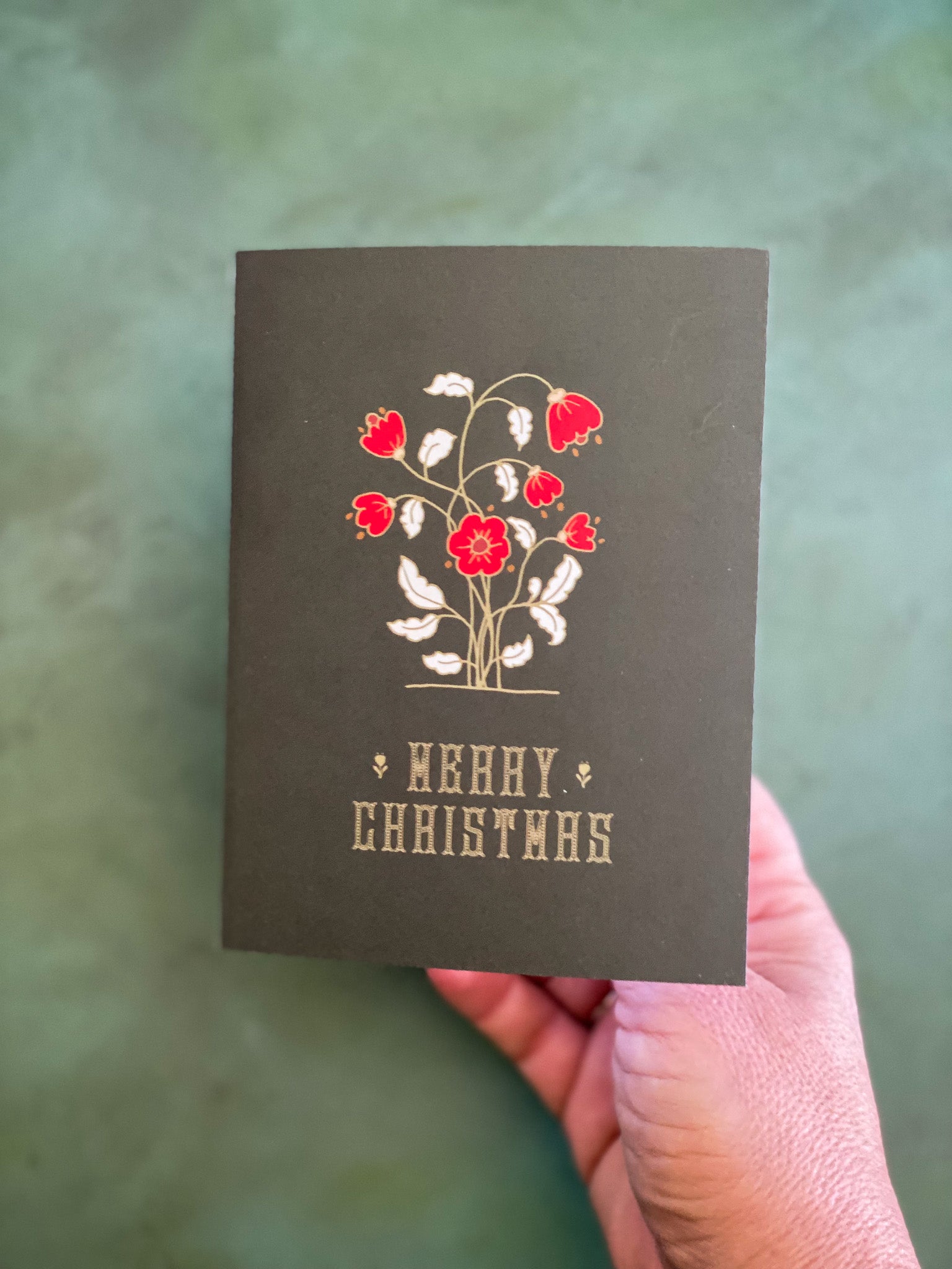 A2 folded notecard with a "Merry Christmas" message on the front and a blank interior to personalize your own note.