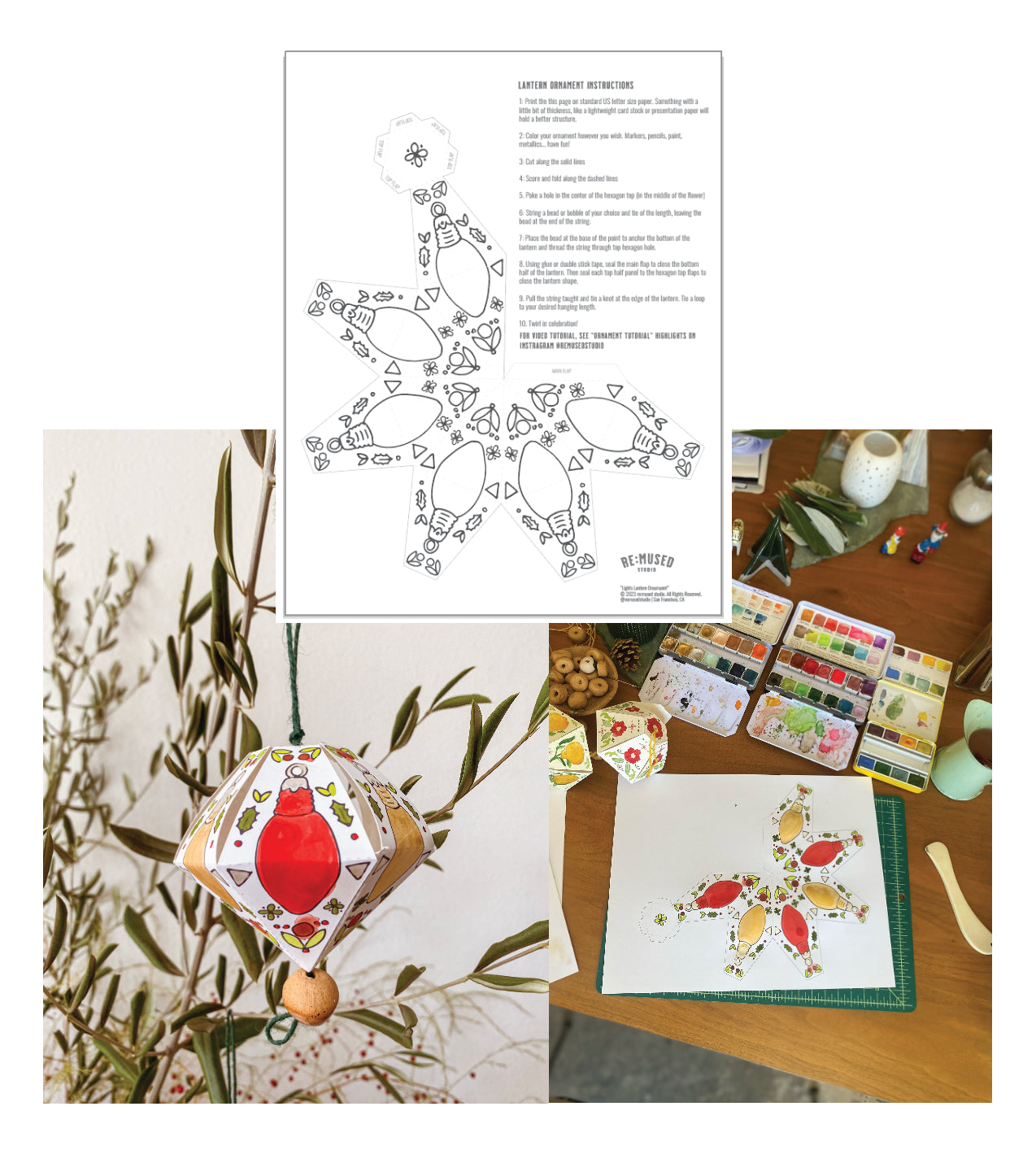 "lights" printable paper lantern ornament