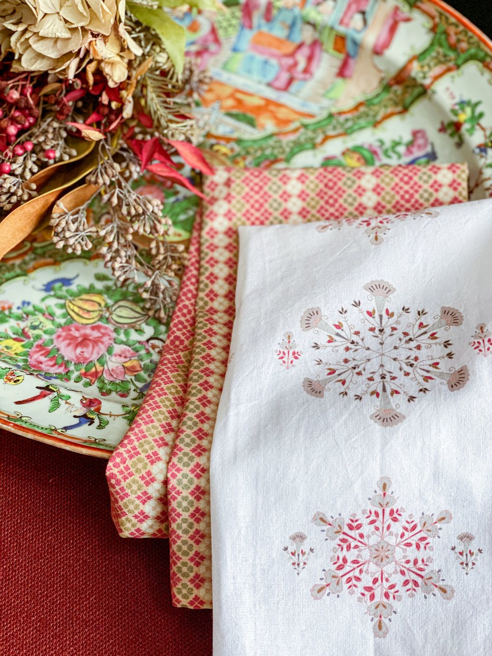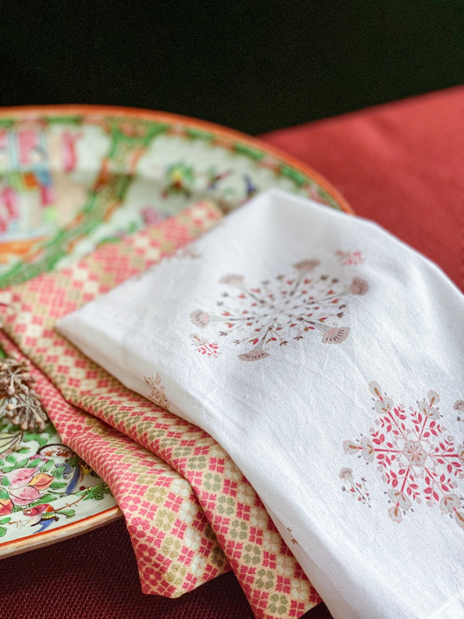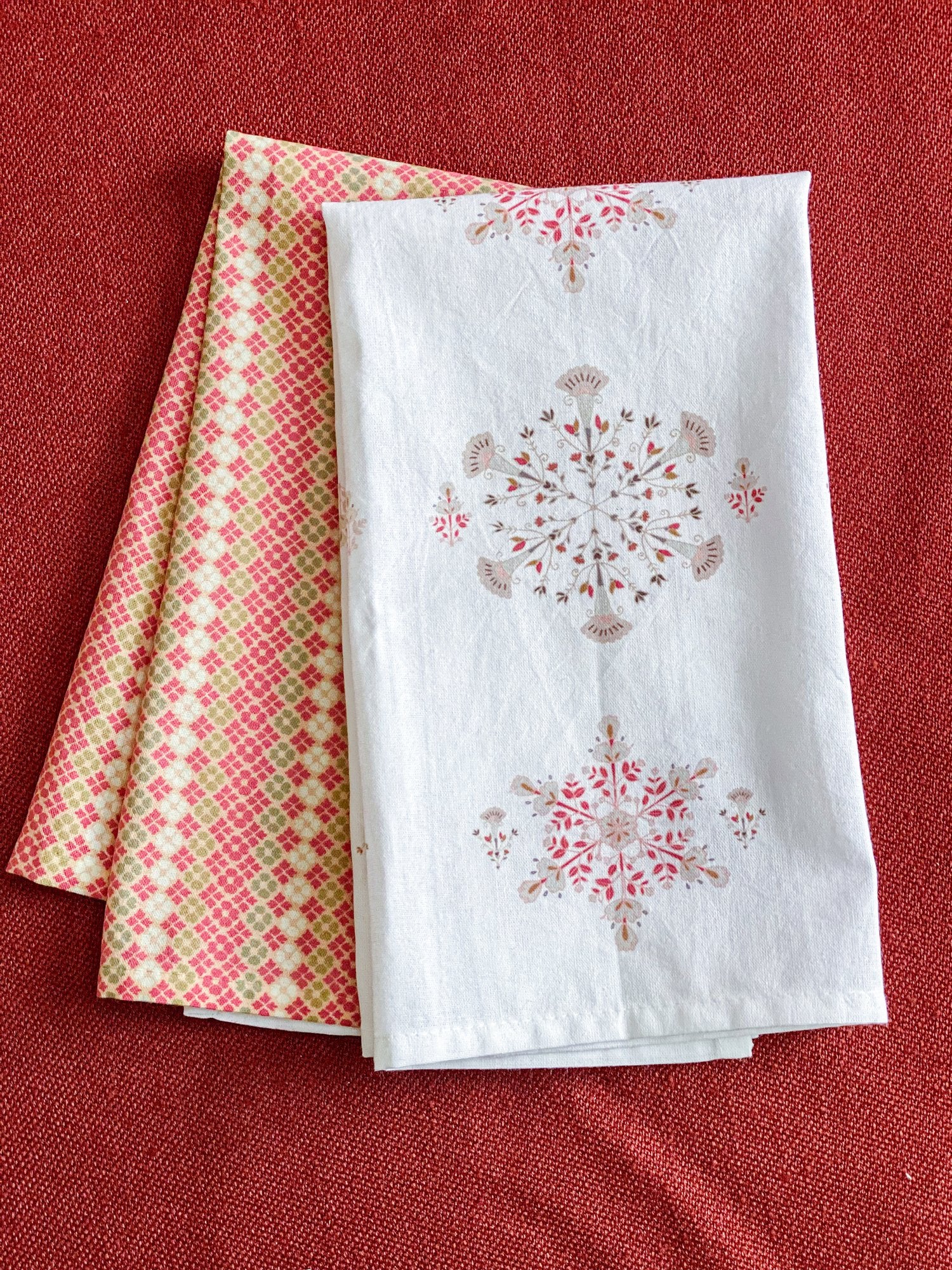 Brighten up your kitchen or dining table with this floral snowflake pattern, perfect for the holiday season. Great for use as a tea towel or as napkins for your holiday place settings. Wrap them up in your favorite ribbon for a lovely hostess gift or stocking stuffer.