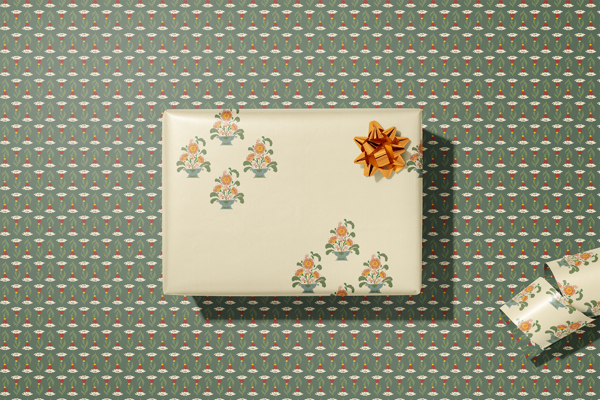 Double the festivities with our double-sided wrapping paper featuring a pair of vintage inspired floral bouquet and holiday floral patterns.