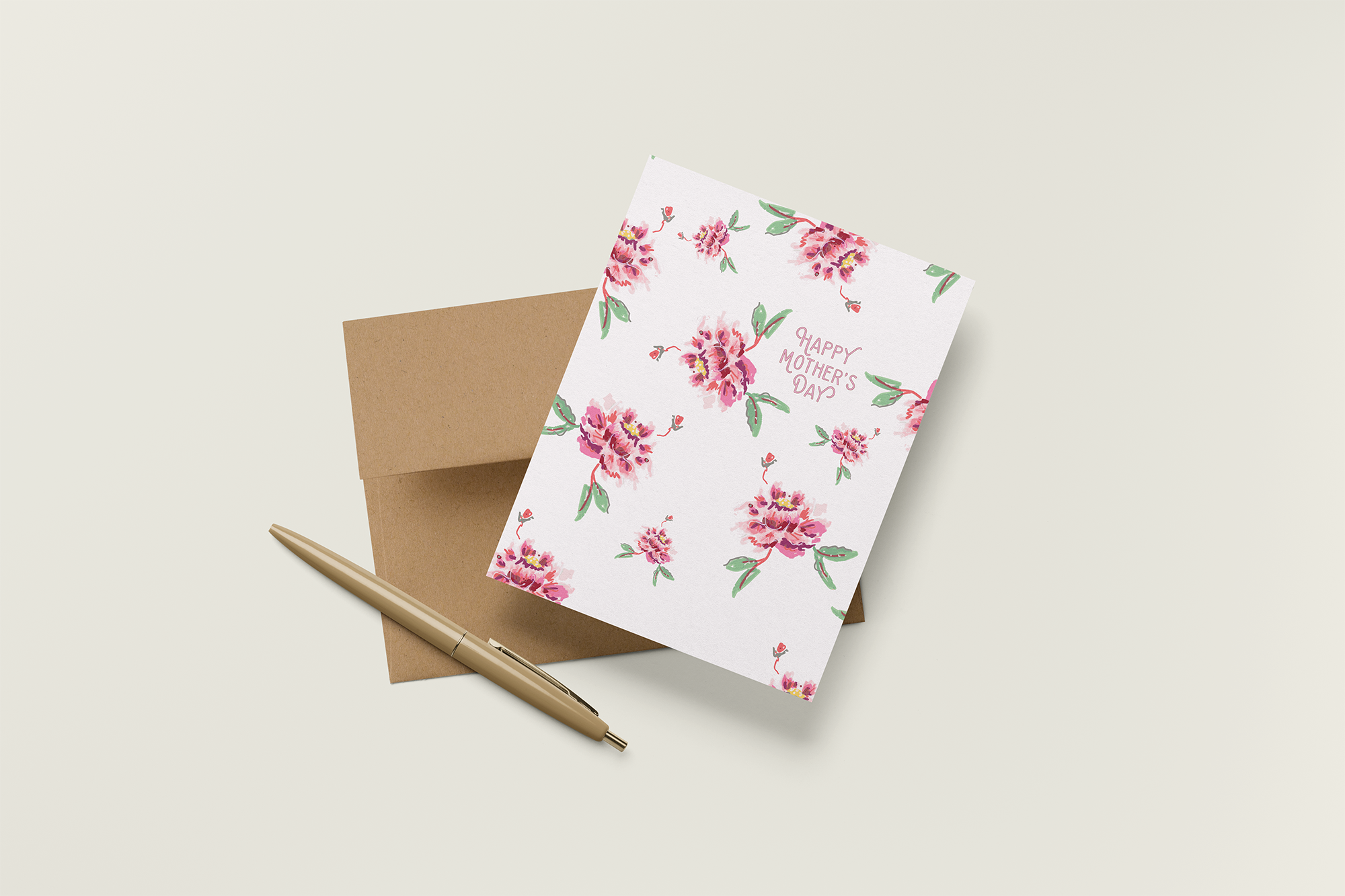 Peony Mother’s Day features a scattered peony pattern in layered shades of pink and blush, creating a card that feels gentle, painterly, and timeless. The allover floral design pairs beautifully with a simple Mother’s Day message, offering a thoughtful way to celebrate with warmth and grace.