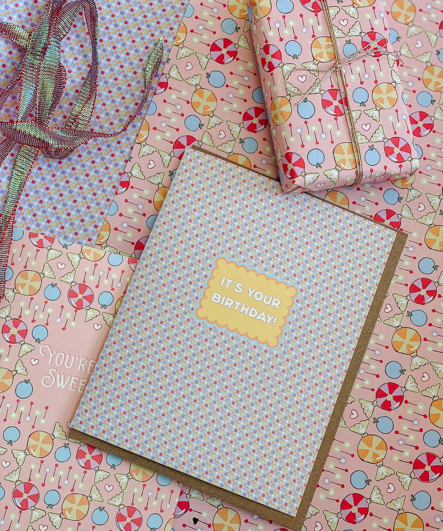 Sweet Check Gift Wrap Sheet - Double Sided