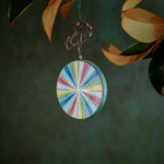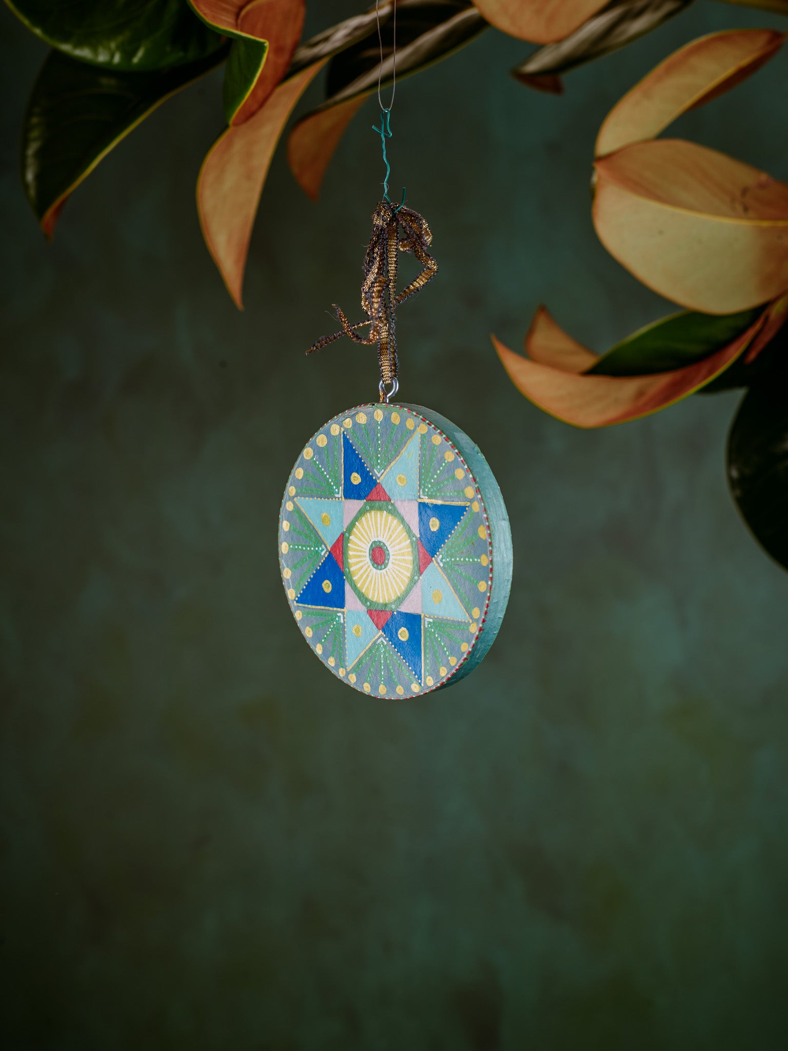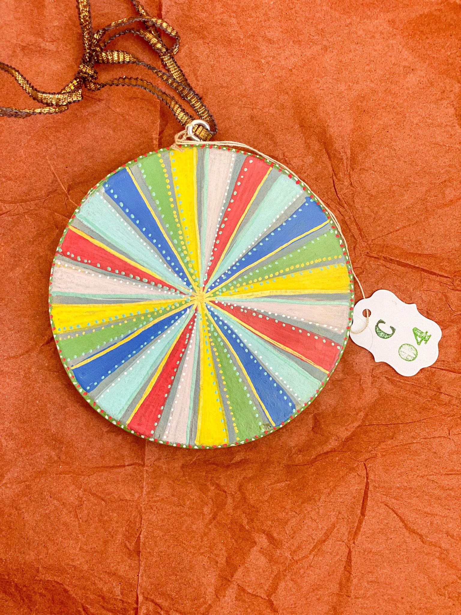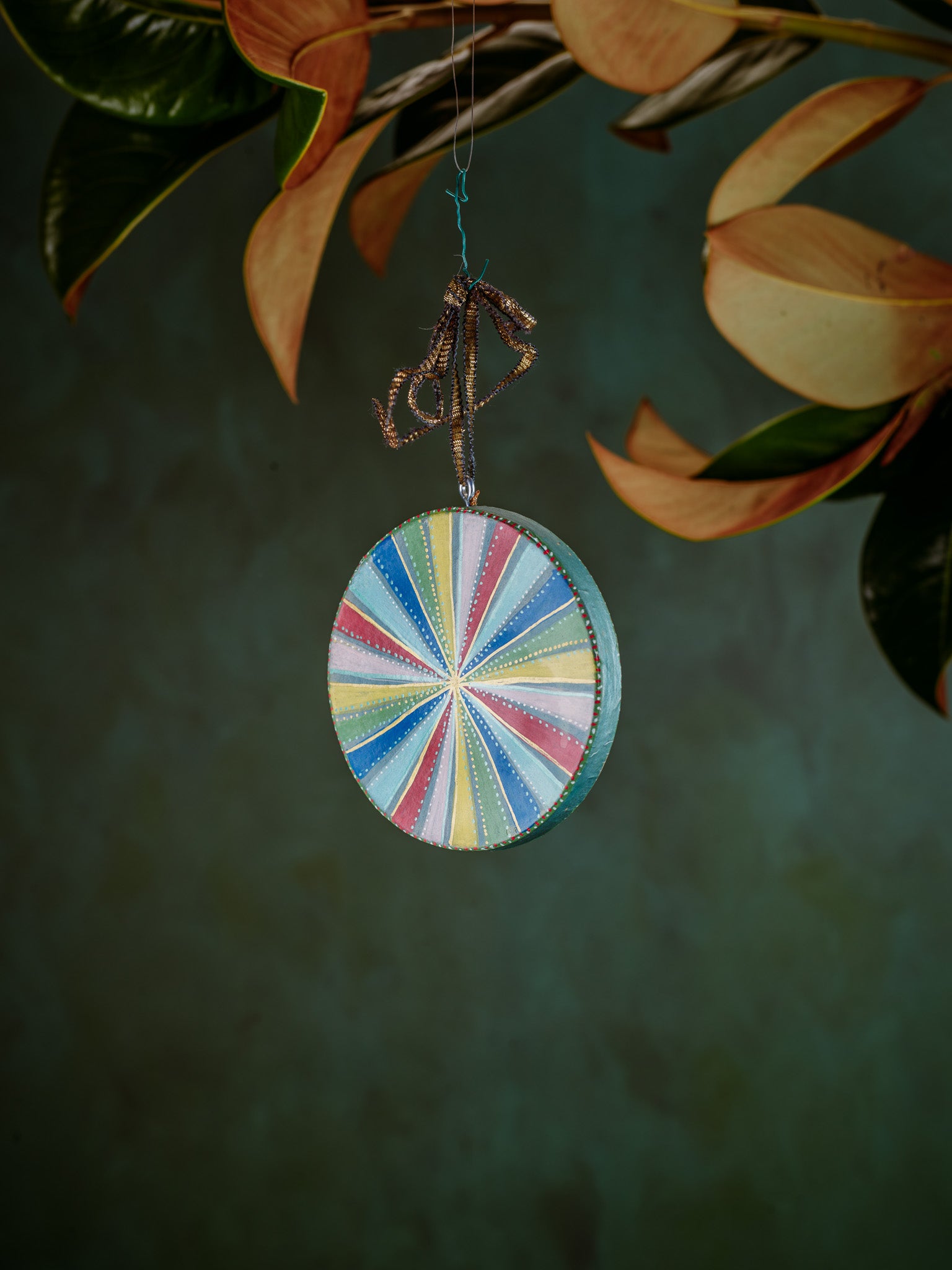 Hand-painted in bright, vintage-inspired hues, these geometric designs echo the playful patterns of carousel canopies and carnival games with the glow of holiday lights.