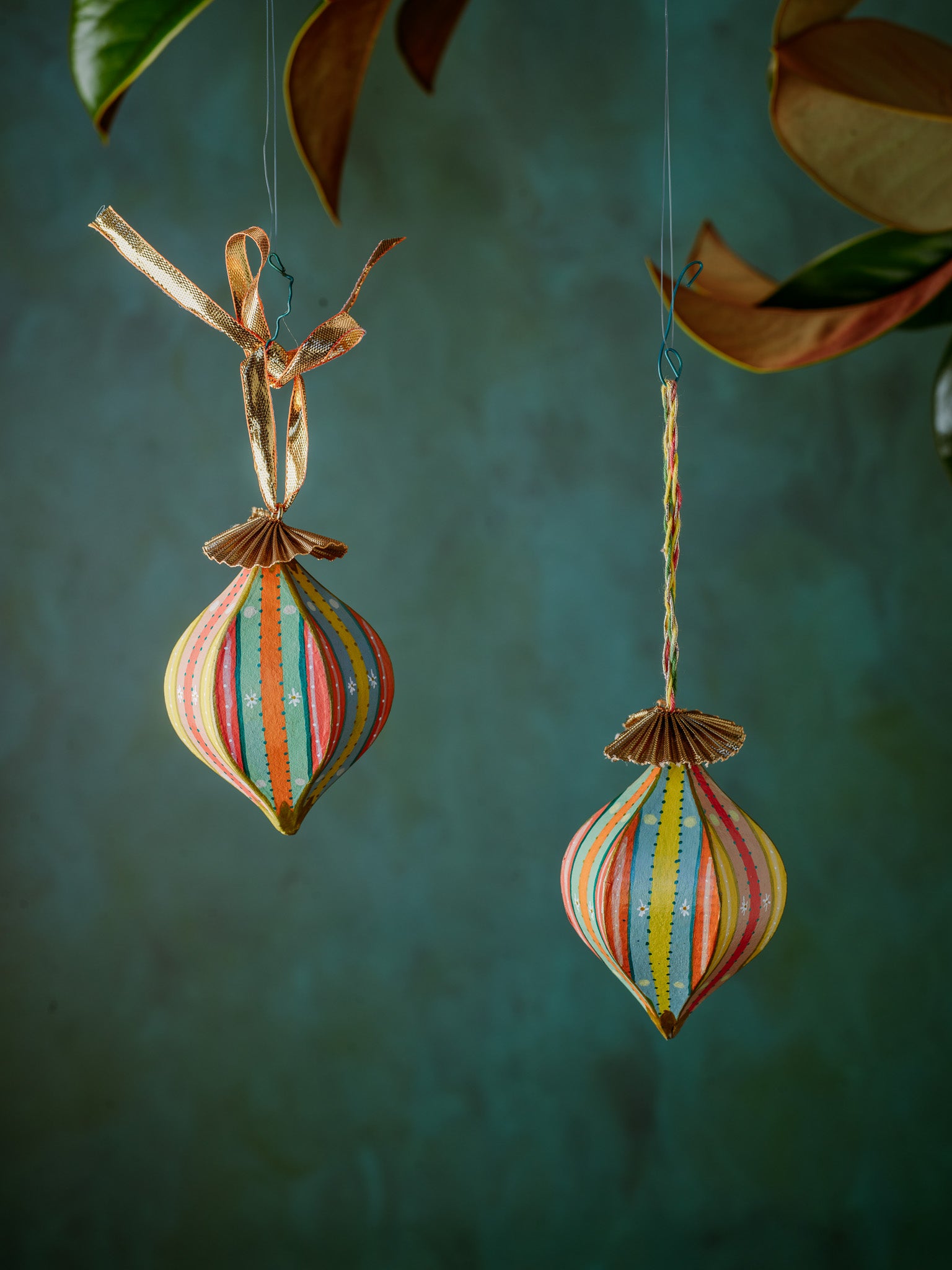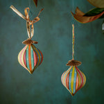 Playful and timeless, these hand-painted ornaments capture the joyful motion and color of carnival celebrations and vintage circus stripes.