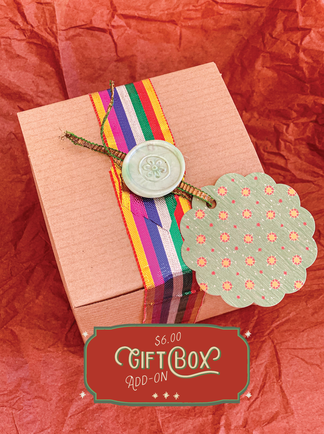 Is this a gift? Add our gift box option with vintage ribbon and wax seal closure by adding to your cart HERE . (additional $6 per box. If you're ordering more than one ornament please be sure to select the amount you need gift wrapped.)