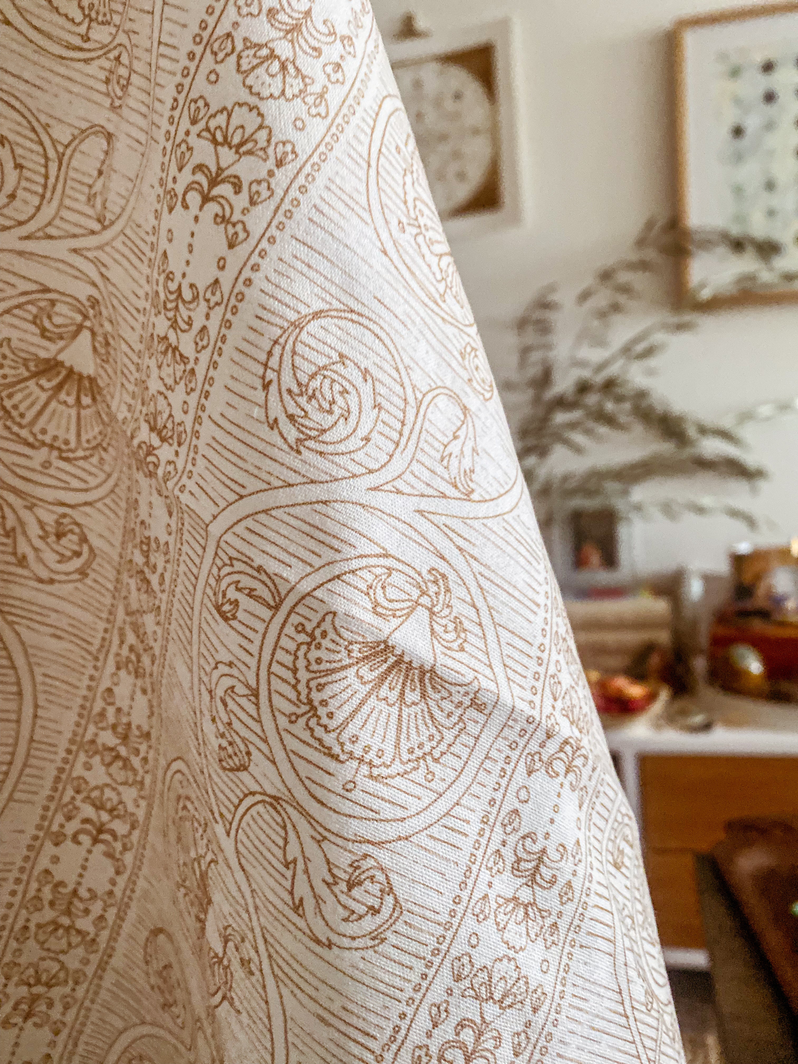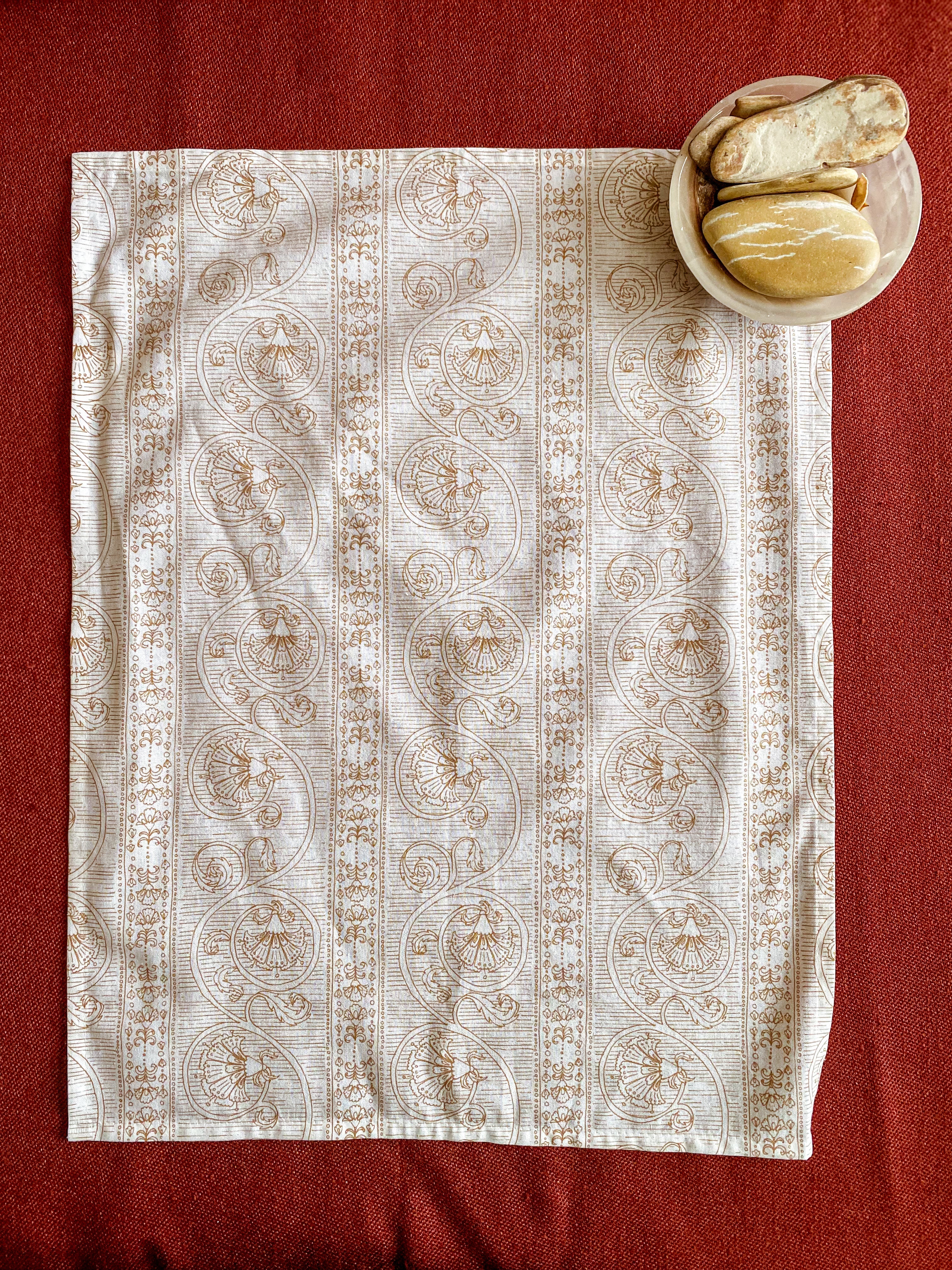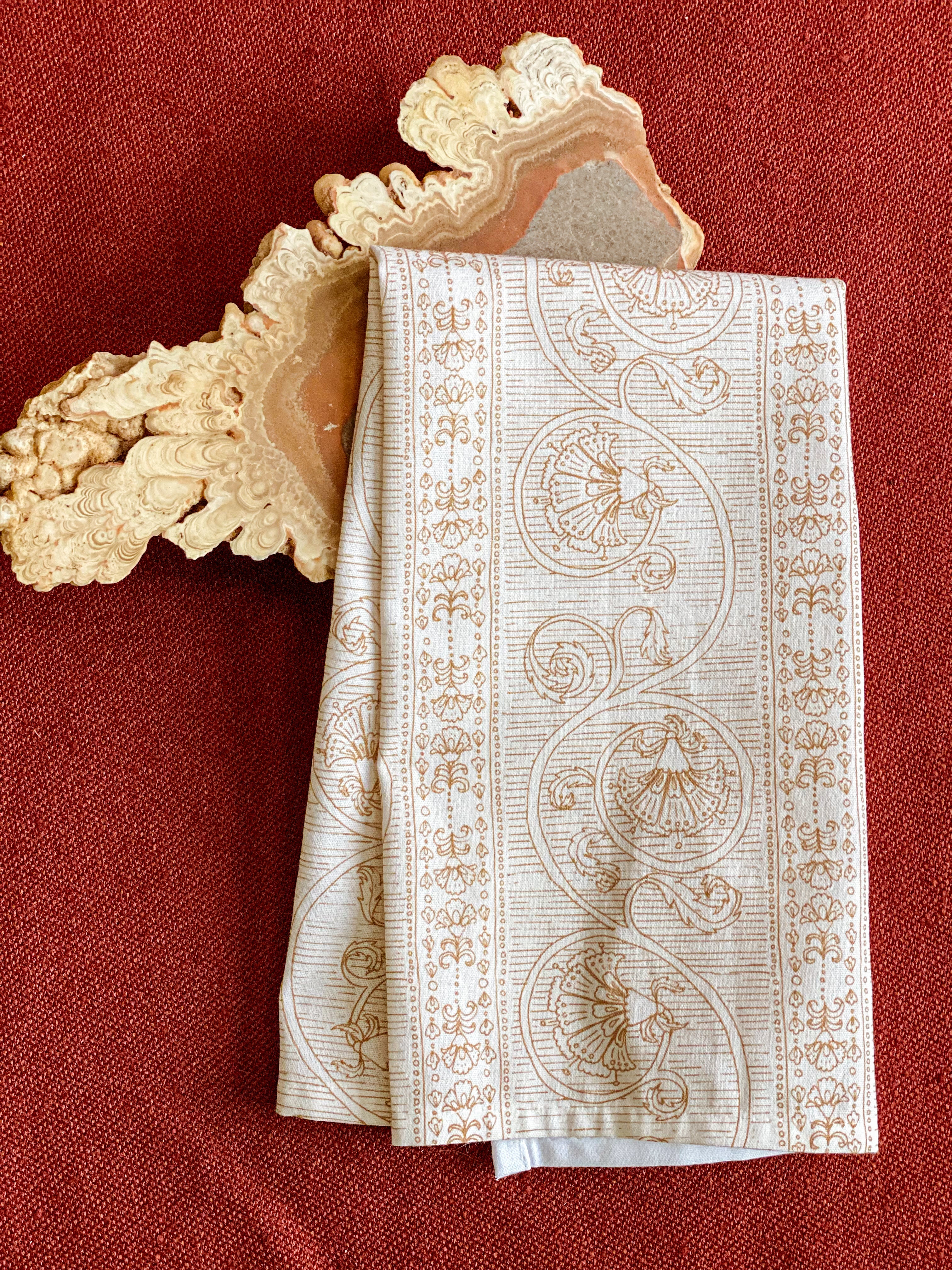 Warm up your kitchen or dining table with this etching style floral pattern. Great for use as a tea towel or as napkins for your dinner party or brunch place settings. Wrap them up for a lovely hostess or housewarming gift.