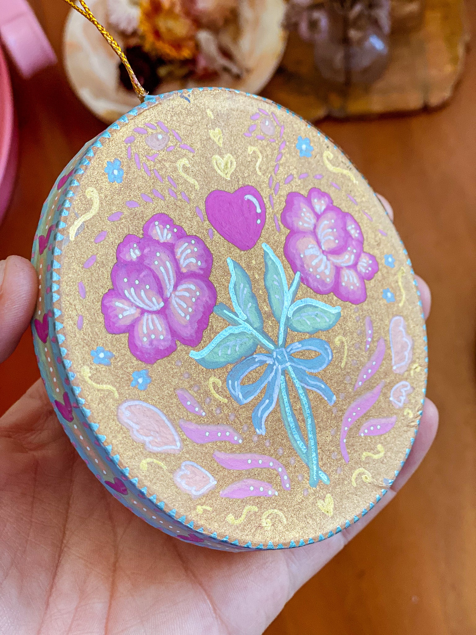 Valentine's Hand-Painted Ornament – Gold 2