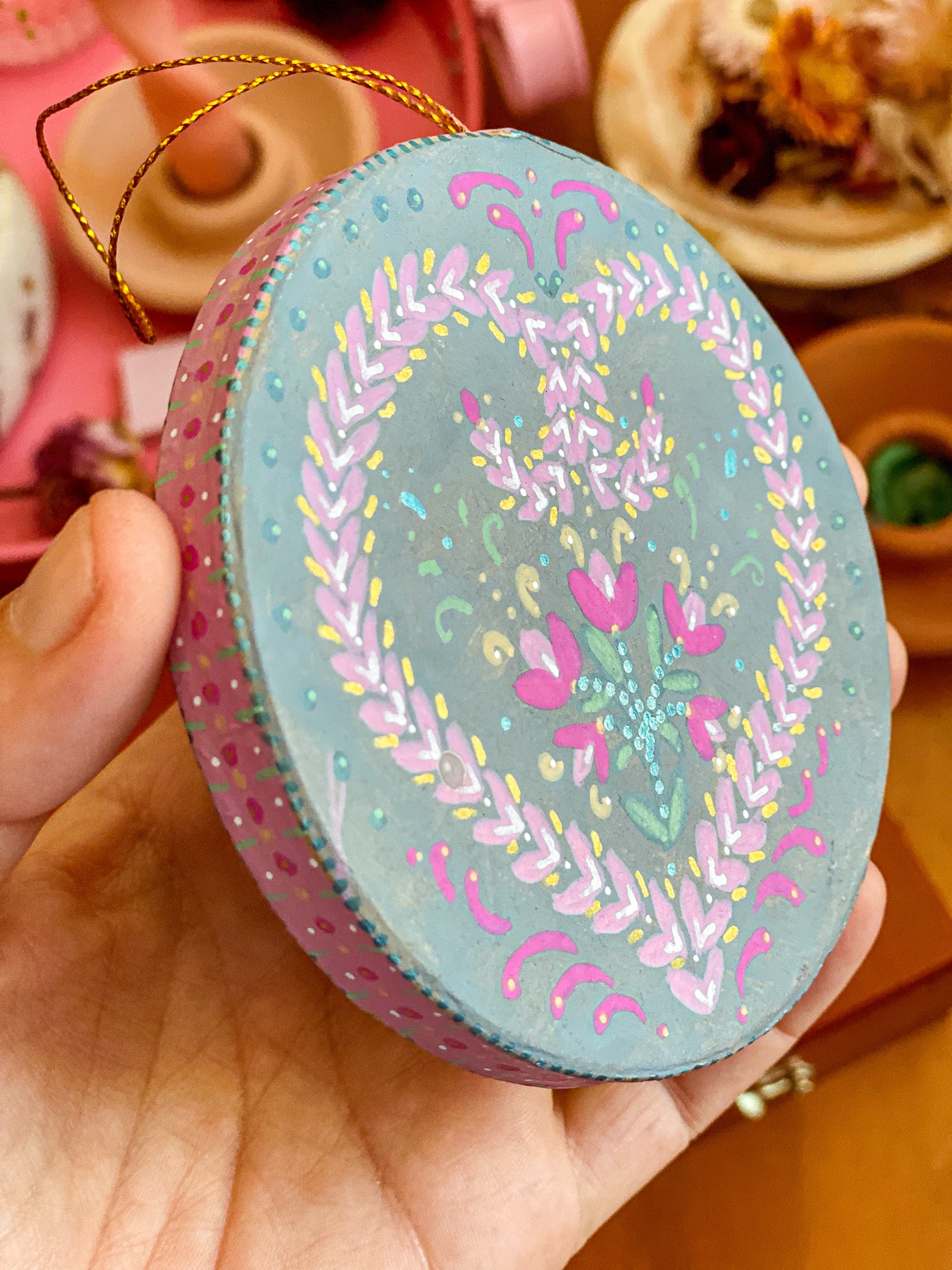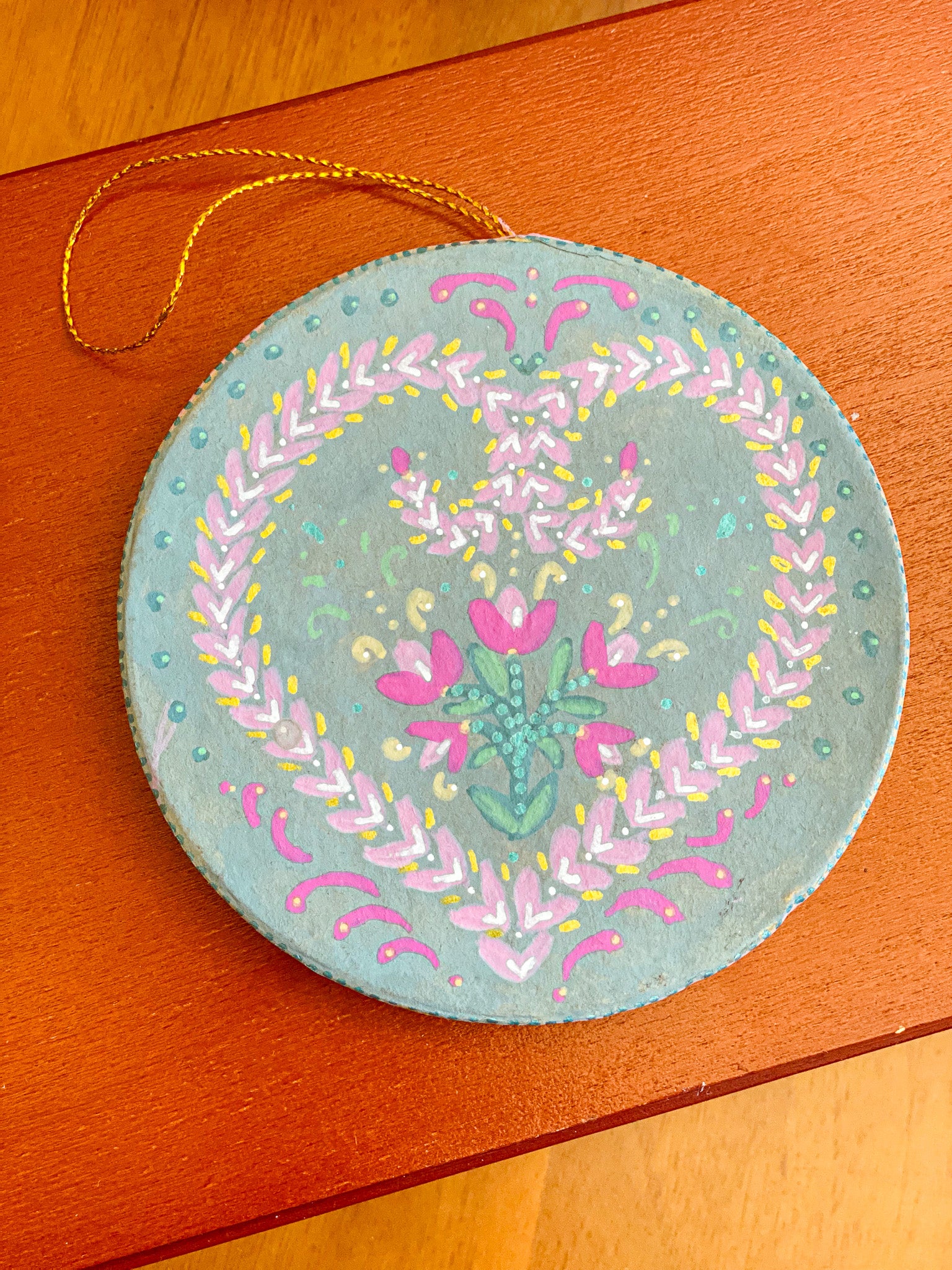 Valentine's Hand-Painted Ornament – Teal 1