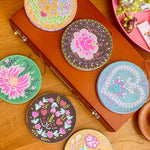 A heart shaped floral motif inspired by folk art traditions bring hand-painted charm and shimmering metallic touches to this sweet Valentine's Day gift.