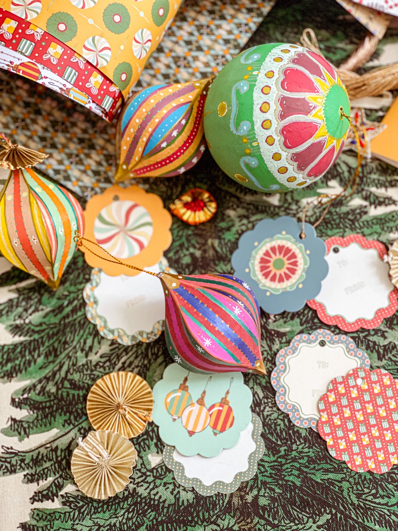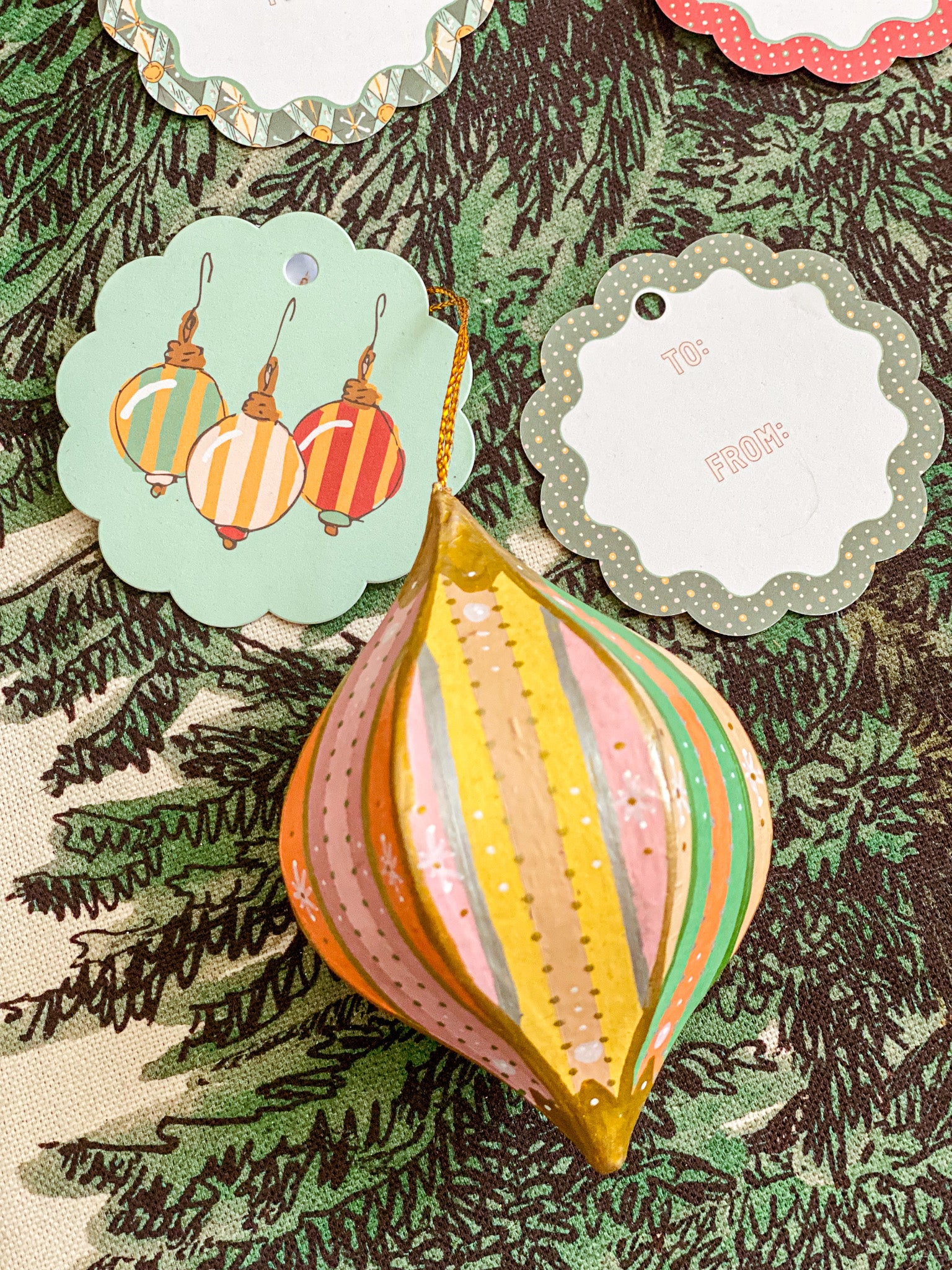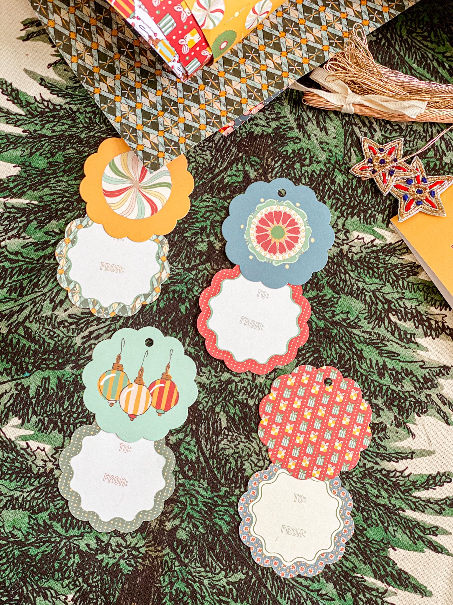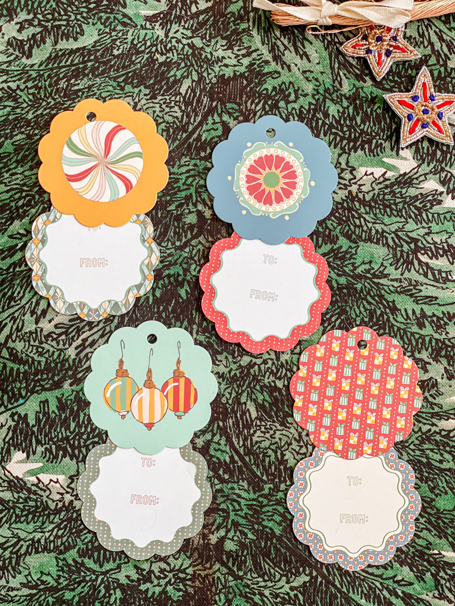 Bring a European vintage style to your gifting with the Carnivaliday gift tag set, a festive array of double-sided holiday tags featuring a vibrant vintage-inspired holiday motifs and patterns. Hand-drawn candies, gift boxes, carousel and ornament illustrations are featured on one side and the reverse has To/From graphics framed in diamond and dot patterns reminiscent of French and Italian block printed papers. Combining nostalgic circus-inspired motifs and retro holiday décor, these gift tags pair perfectly with our coordinating double-sided gift wrap and our premium gift bags for an extra special holiday presentation with a touch of vintage whimsy.