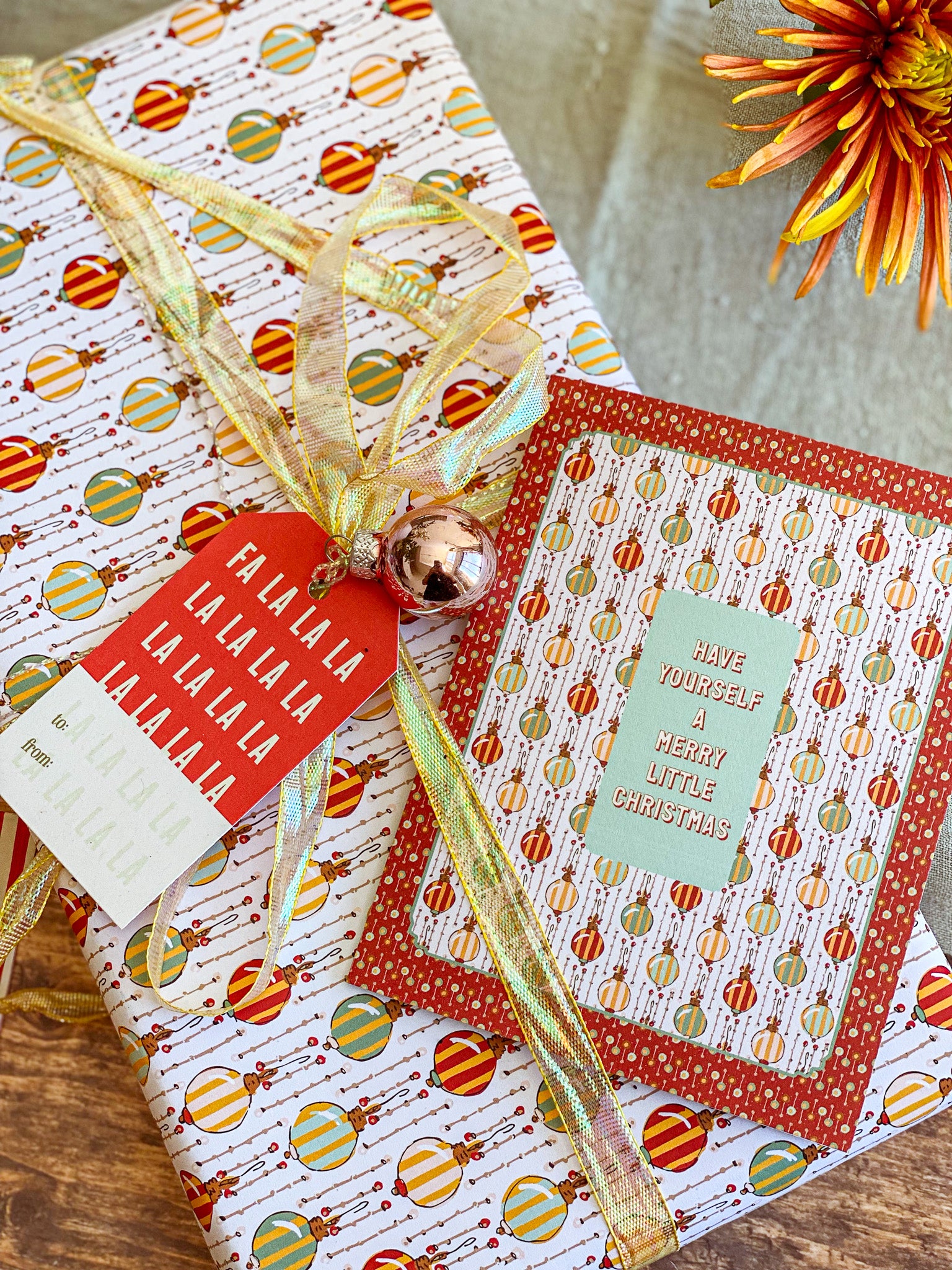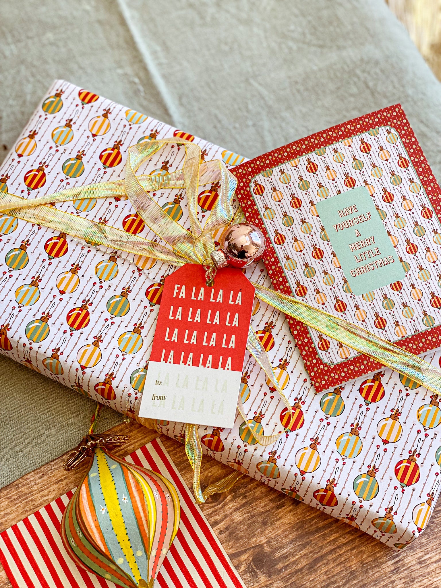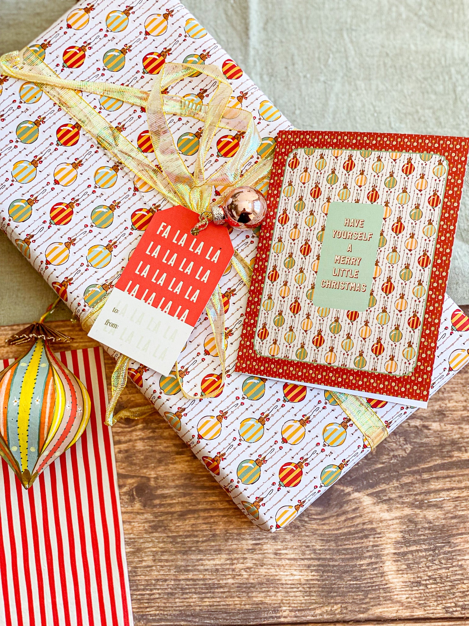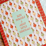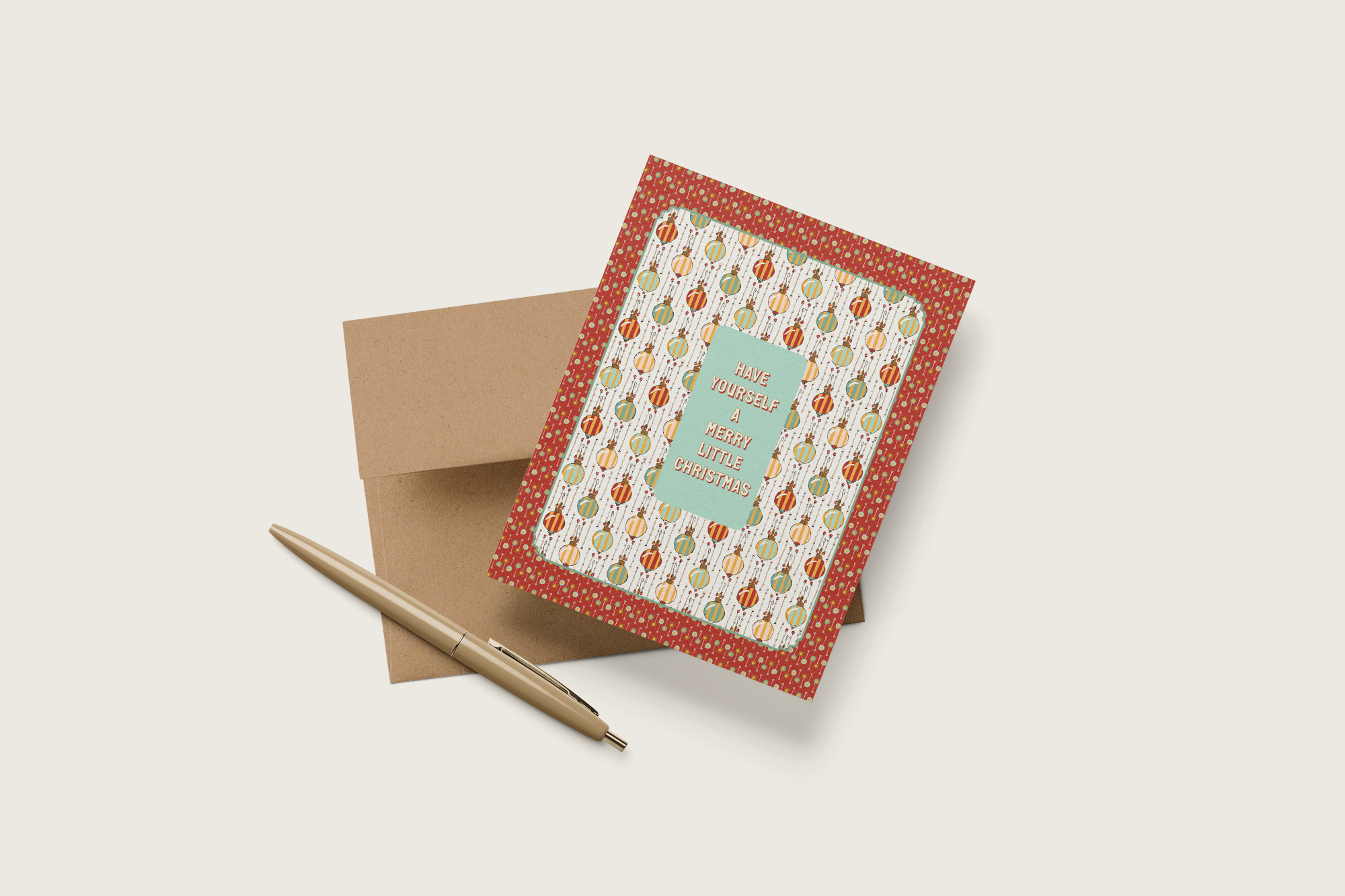 Make the holidays a bit more merry with this vintage inspired hand illustrated Christmas card from our Holiday collection. A festive geometric multicolor striped ornament pattern in a rich red dot frame comes together with a heartfelt "Have Yourself a Merry Little Christmas" message in the center. Pair this holiday greeting card with our coordinating gift wrap for a beautifully cohesive holiday gift that brings a touch of nostalgic wonder.