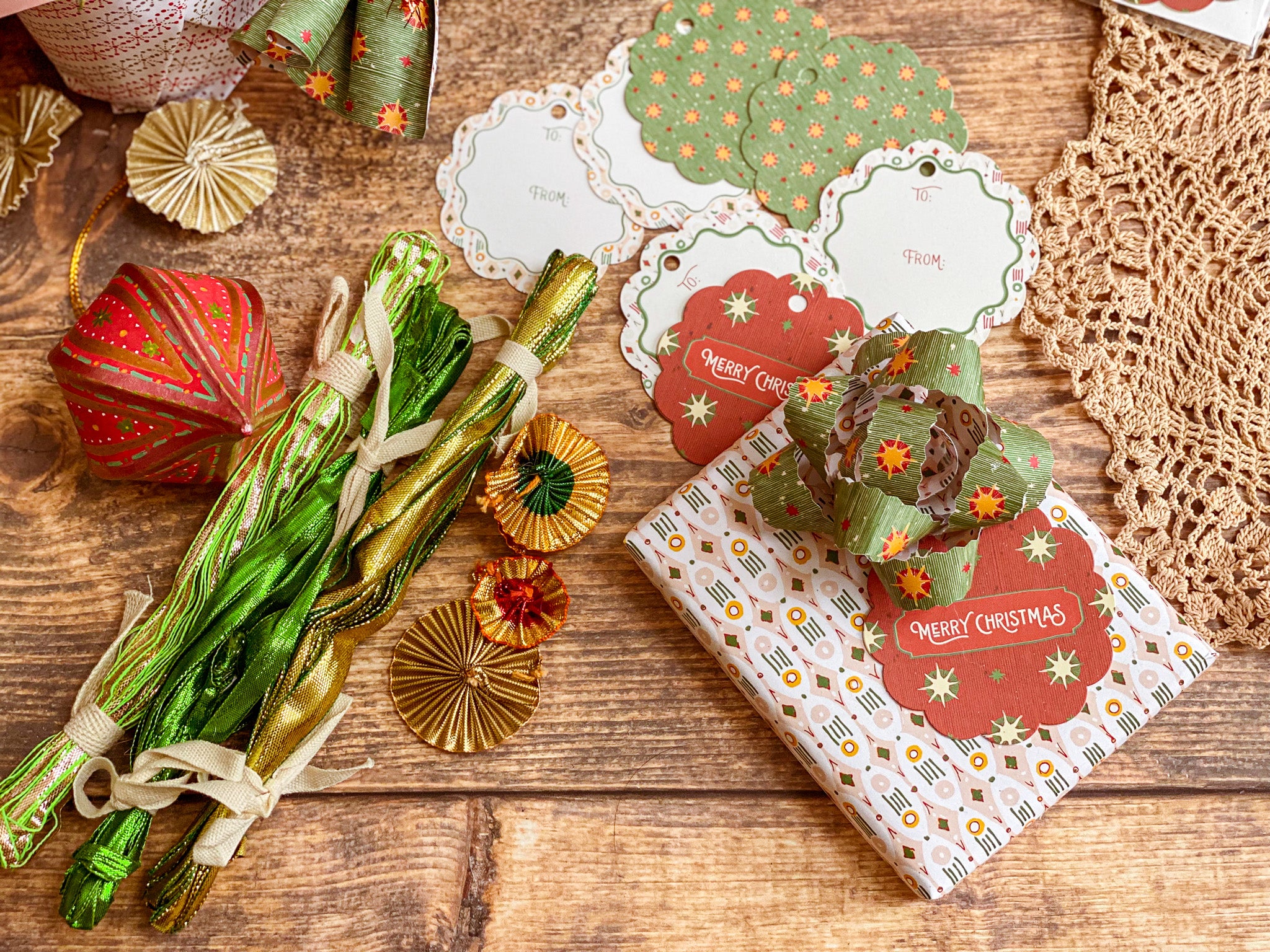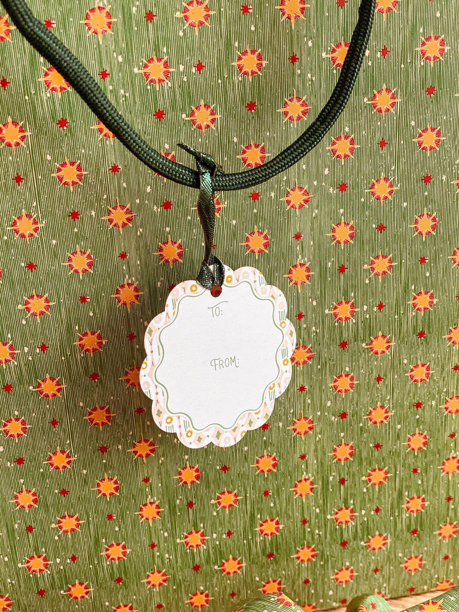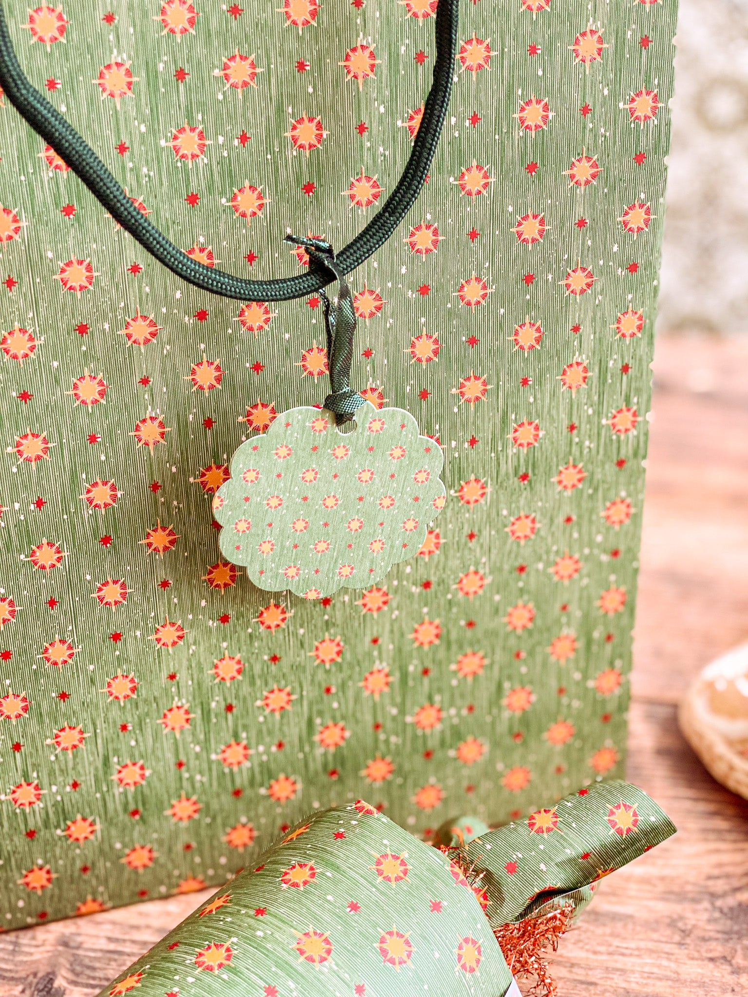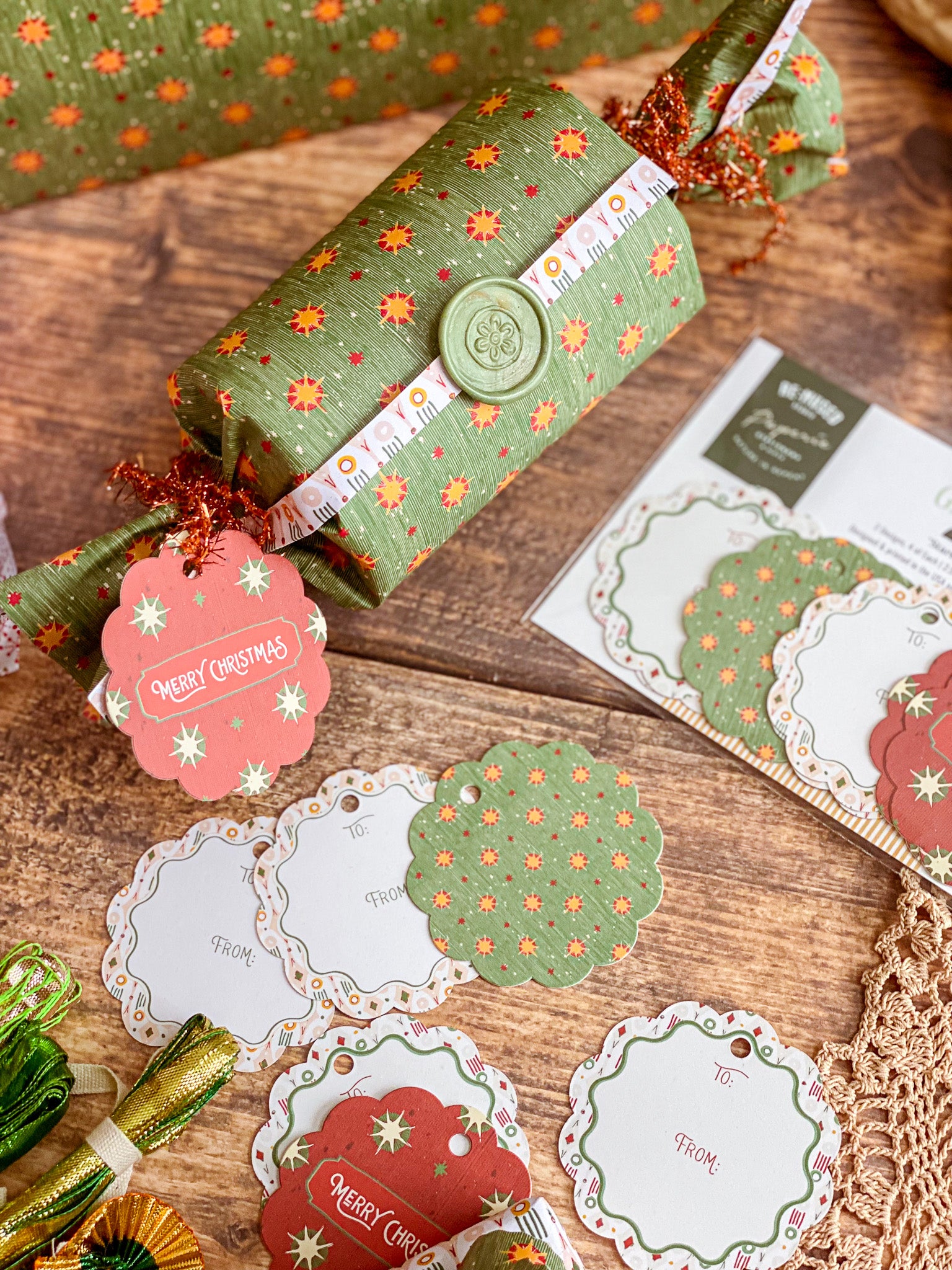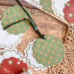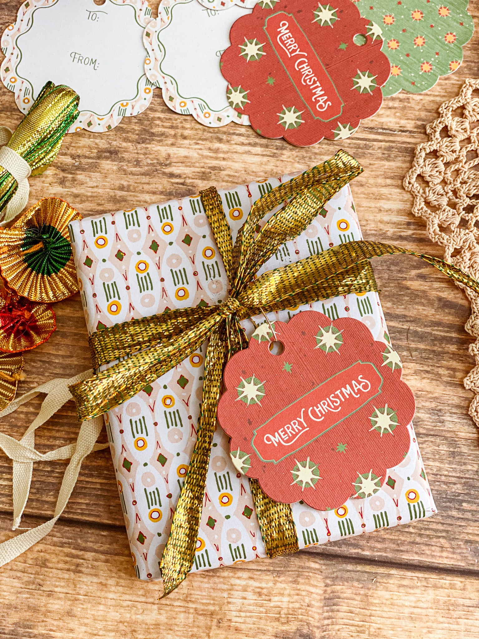 Bring a European vintage style to your gifting with Starbright gift tags, a paring of double-sided holiday tags featuring a textured hand illustrated starry sky pattern on one side in vibrant red with "Merry Christmas" and green with bursts of golden yellows and cream stars. The reverse showcases a diamond, dot and stripe pattern reminiscent of French and Italian block printed papers and "To/From" graphics for easy personalization. Combining nostalgic circus-inspired motifs and retro holiday décor, these gift tags pair perfectly with our coordinating double-sided gift wrap and our premium gift bags for an extra special holiday presentation