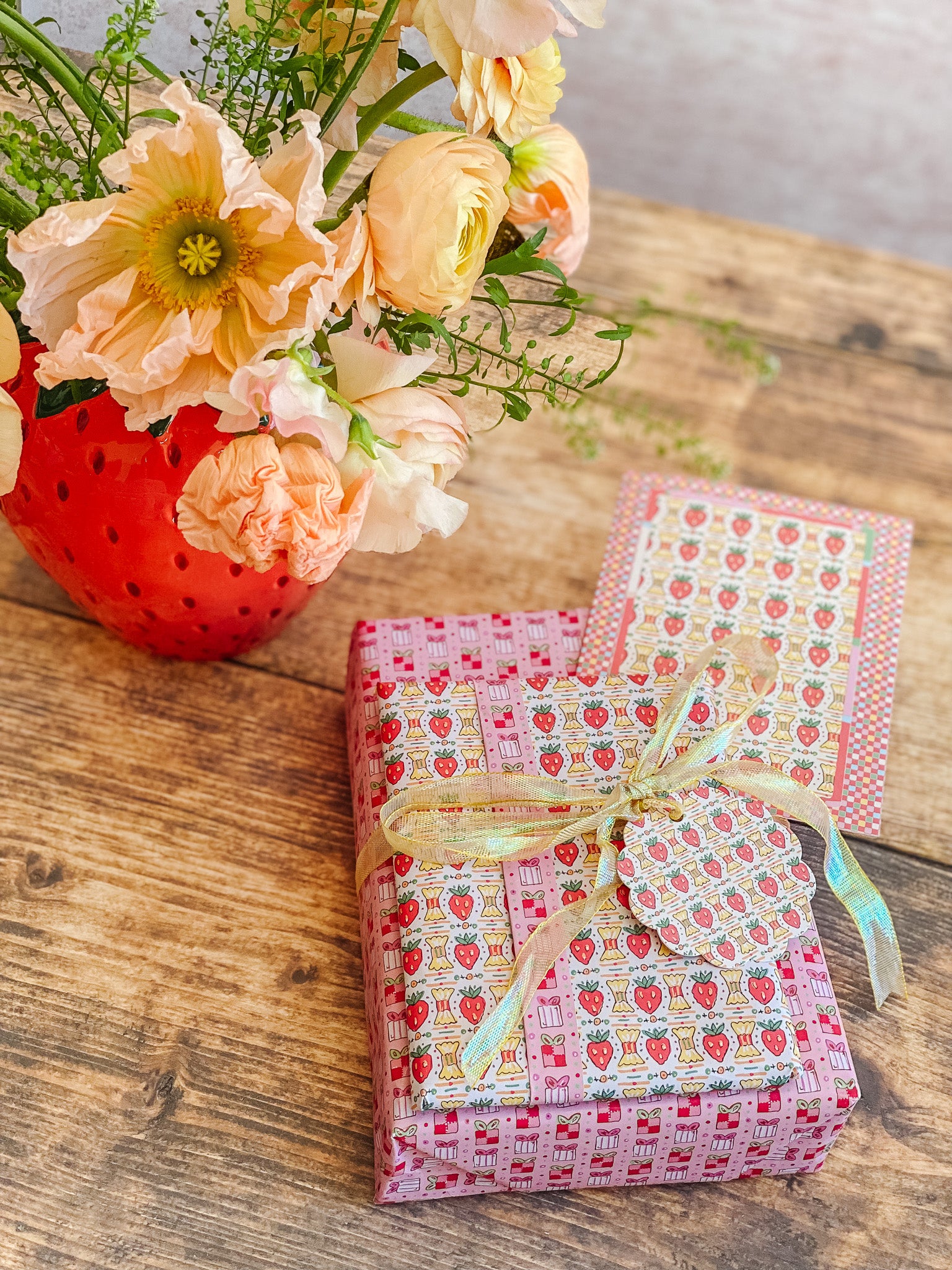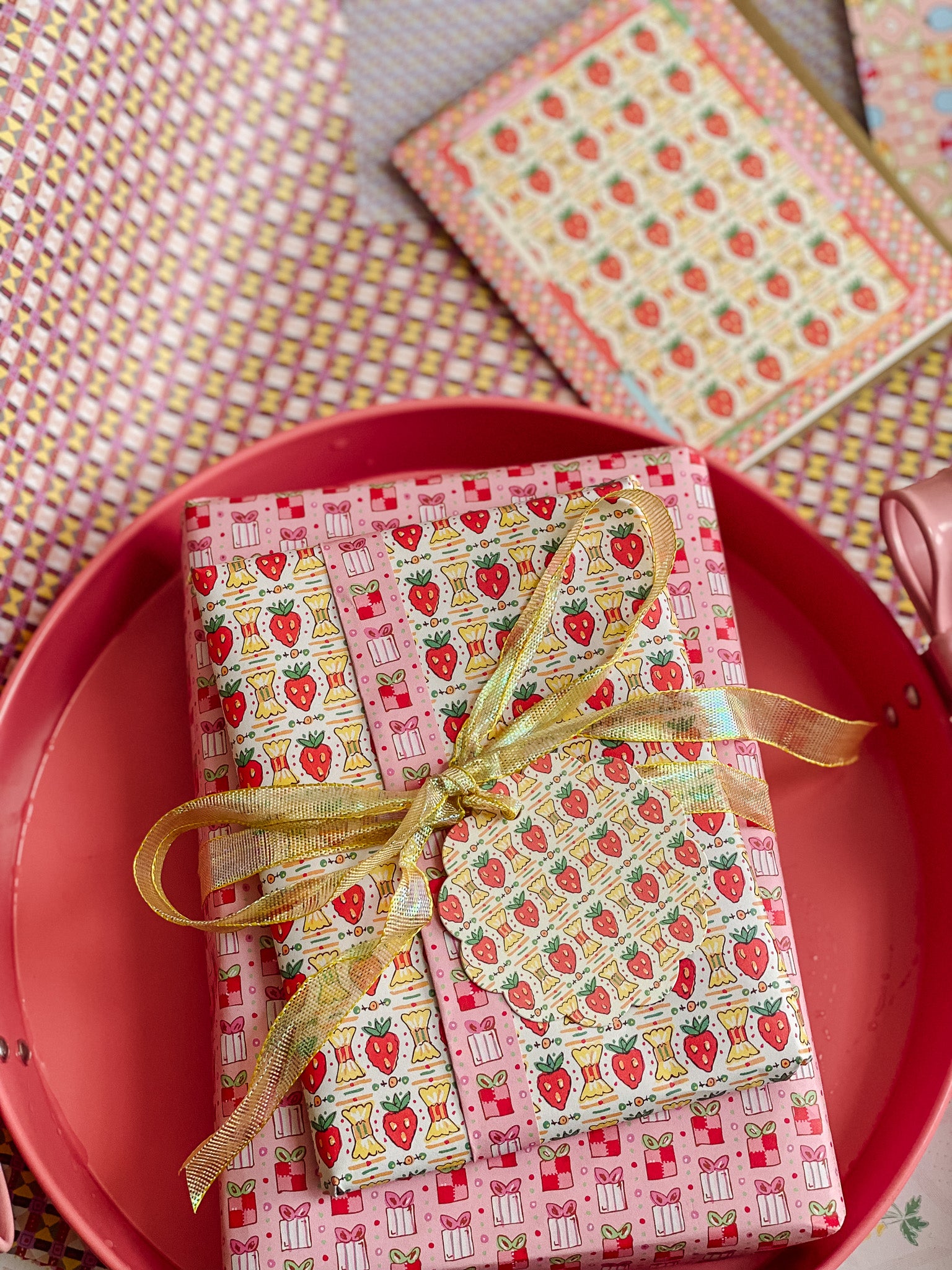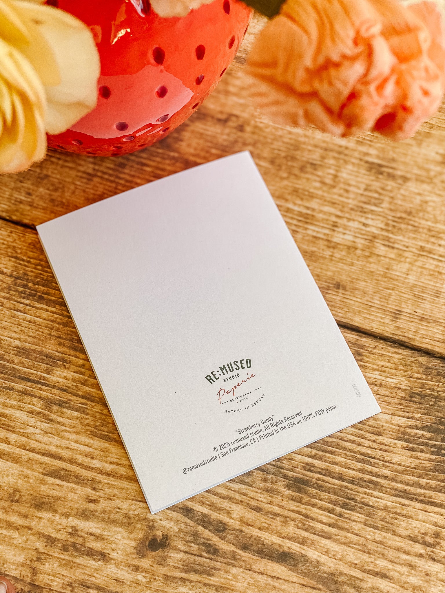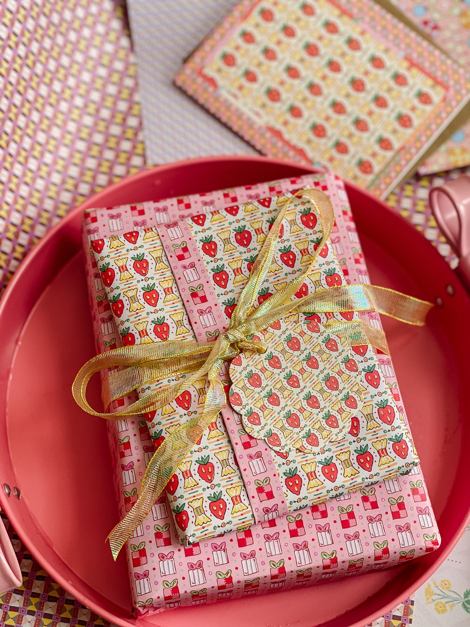 A sweet pattern with a nostalgic twist. Strawberry Candy features a playful repeat of candy-inspired strawberries and wrapped sweets, framed by cheerful checks and soft pastel accents. Drawing from vintage confectionery packaging and Valentine ephemera, this card feels bright, happy, and delightfully nostalgic.