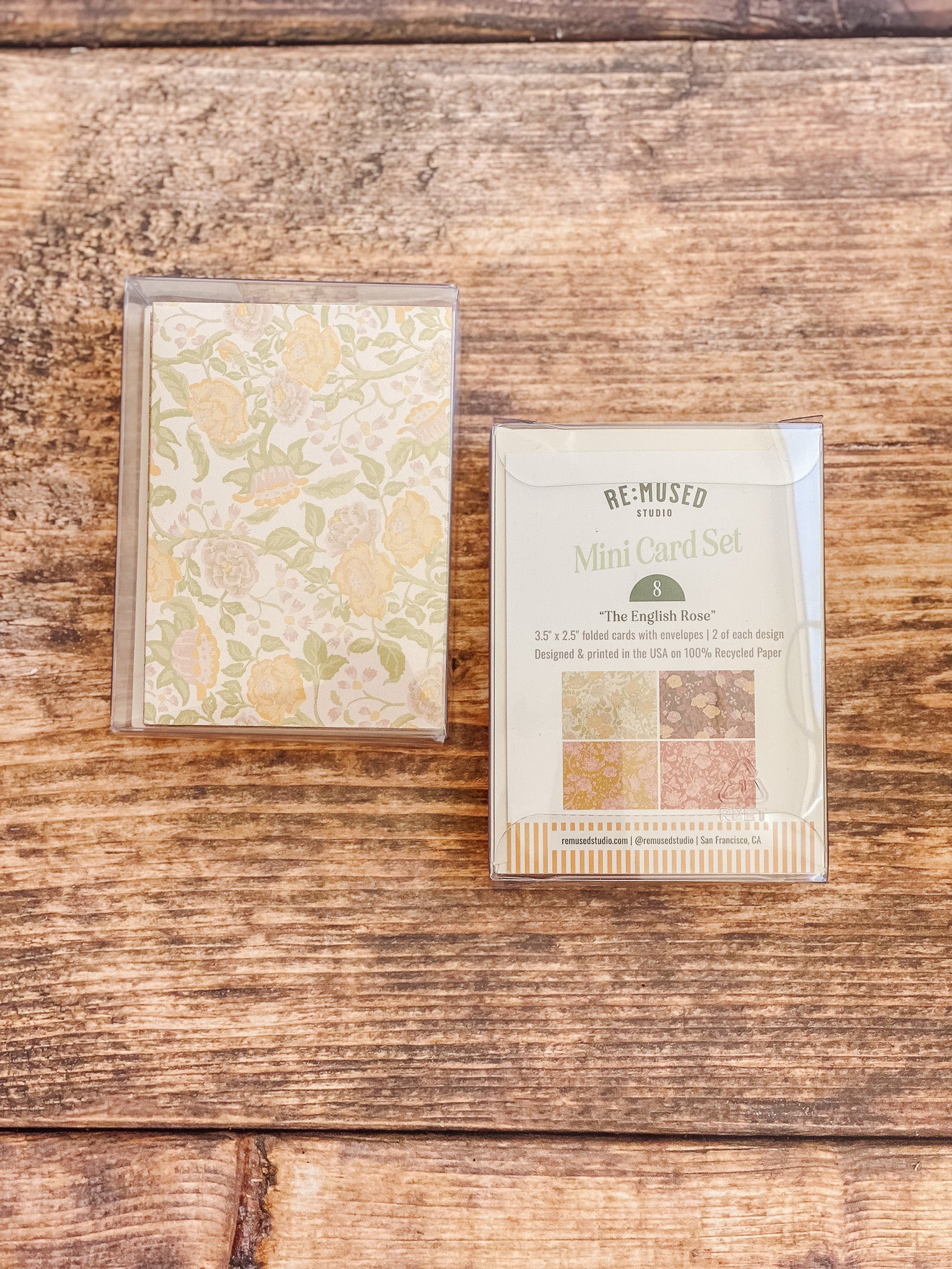 • Card sets come in a rPET clear box (plant based biodegradable) with a 100% recycled branded backing card label.