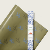 Double the possibilities with our double-sided wrapping paper featuring a classic blue and white ginger jar inspired floral pattern on one side and a delicate green and blue olive branch motif on the other. Wonderful for winter giving and beyond, this gift wrap has become a best-seller year-round for birthdays, Mother's Day and Father's Day, baby showers and more.